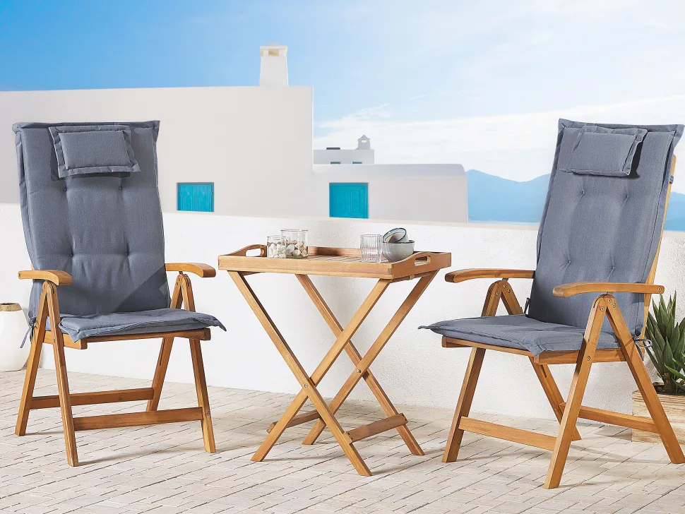 Beliani 2-Istuttava Bistrosetti Vaalea Akasiapuu Sininen Java Best