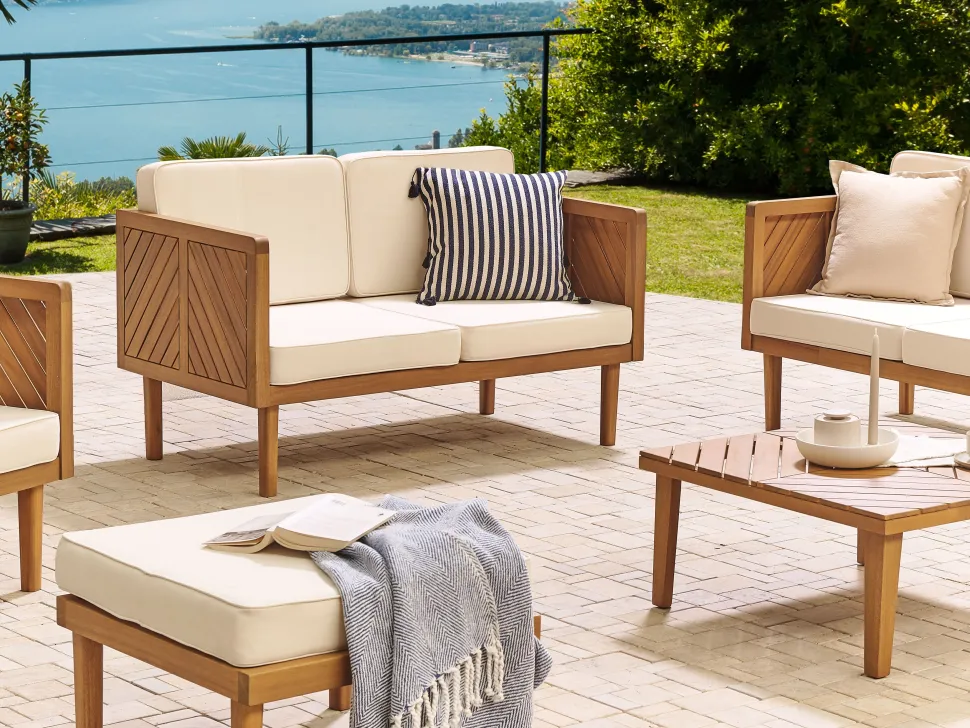 Beliani 2-Istuttava Ulkosohva Akasiapuu Valkoinen Baratti Best Sale
