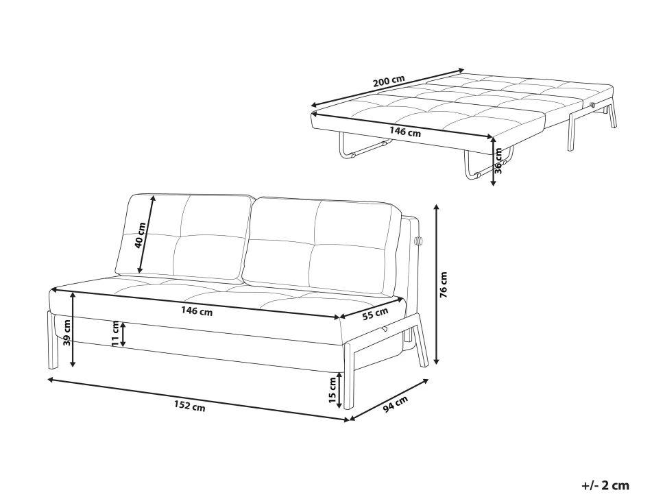 Beliani 2-Istuttava Vuodesohva Kangas Musta Edland Online