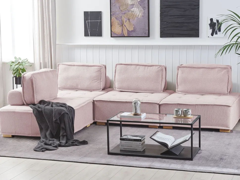 Beliani 4-Istuttava Kulmamoduulisohva Vaaleanpunainen Tibro Store