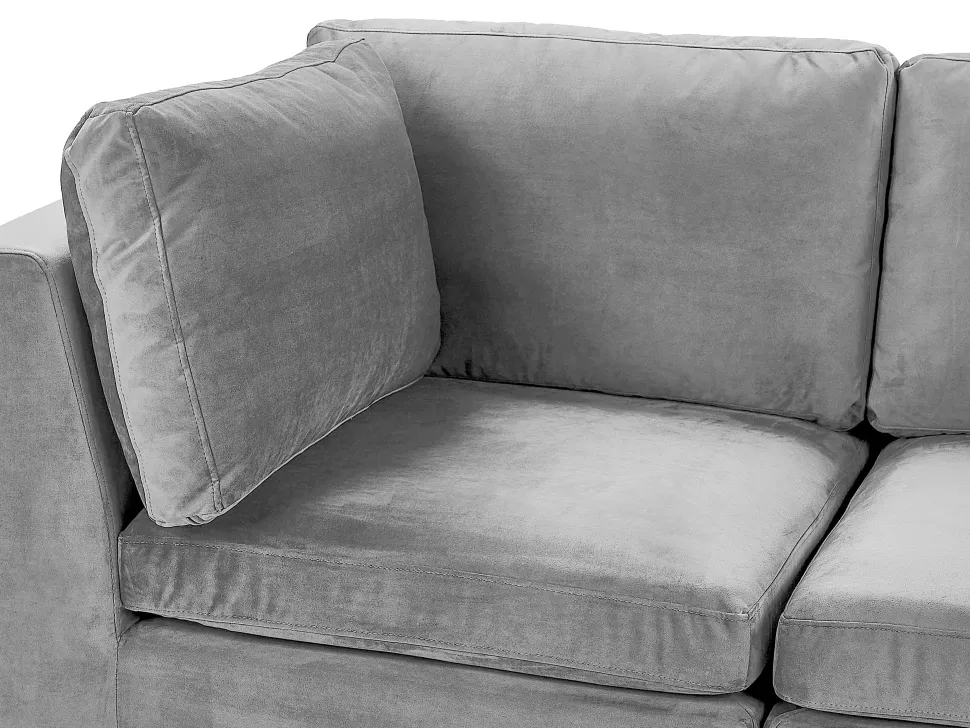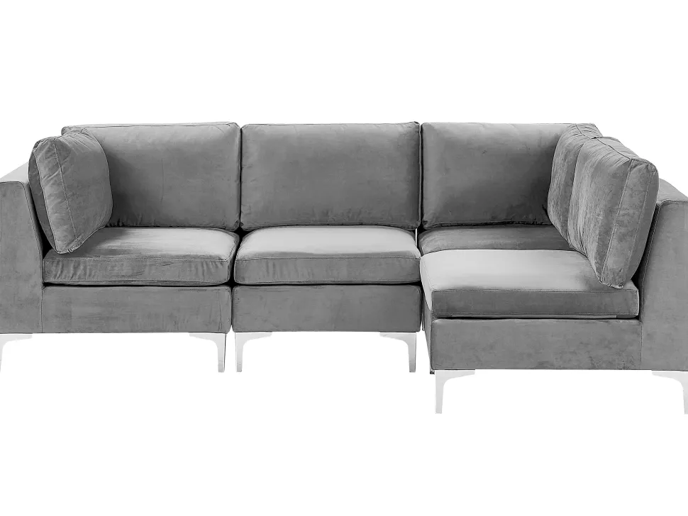 Beliani 4-Istuttava Kulmasohva Sametti Vasenk. Harmaa Evja New