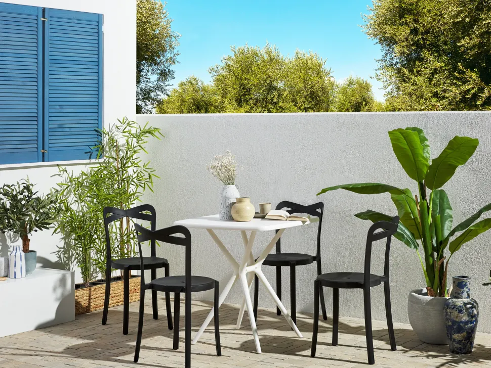 Beliani 4-Istuttava Mustavalkoinen Muovinen Puutarhakalustesetti Sersale / Camogli Sale