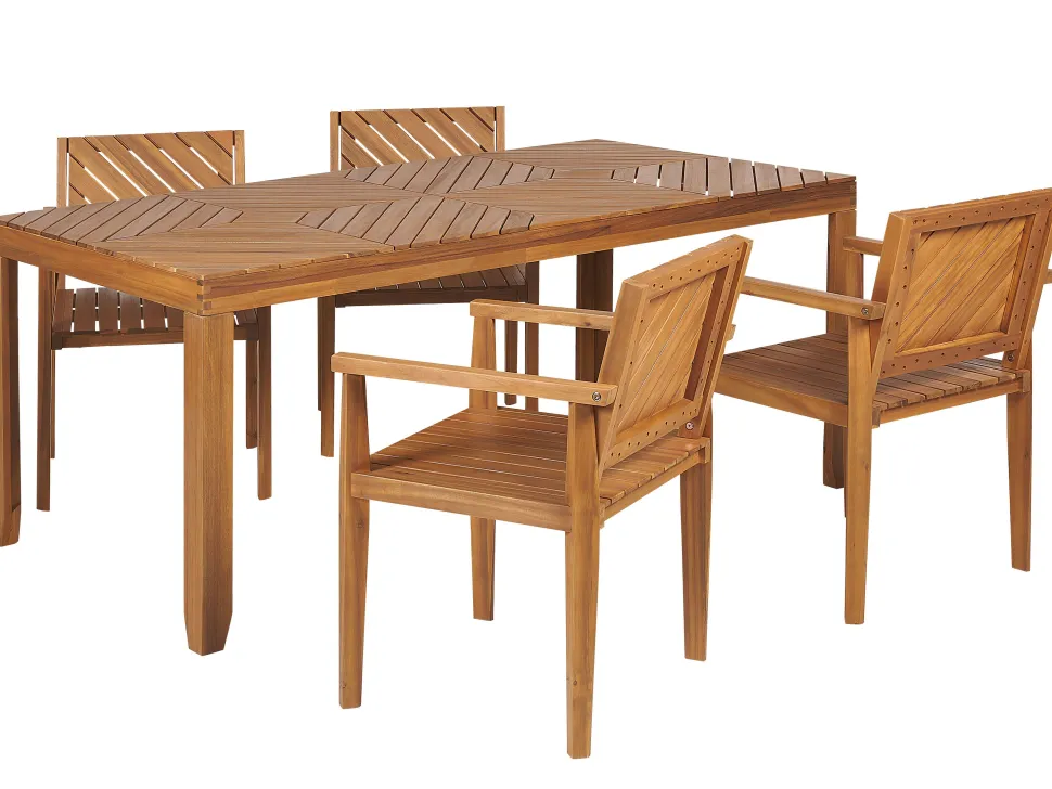Beliani 4-Istuttava Ulkoruokailuryhma Akaasia Vaalea Puu Baratti Outlet