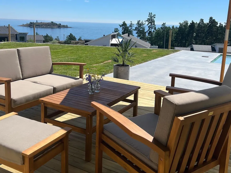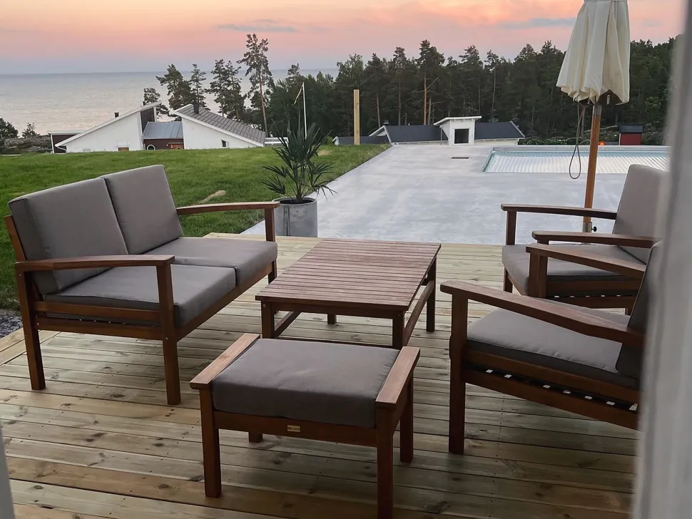 Beliani 4-Istuttava Ulkosohvaryhma Akaasia Vaalea Puu Manila Fashion