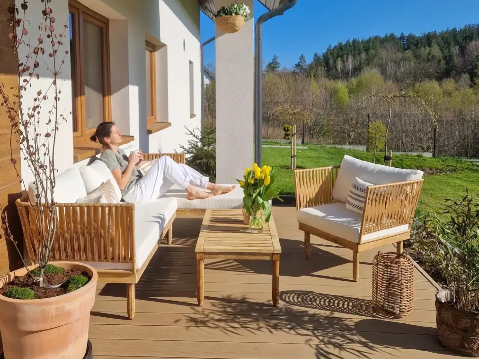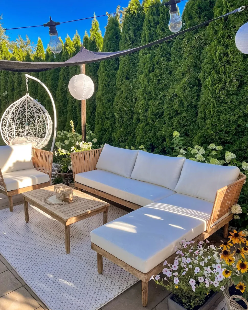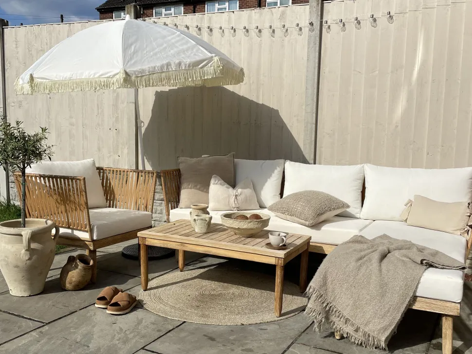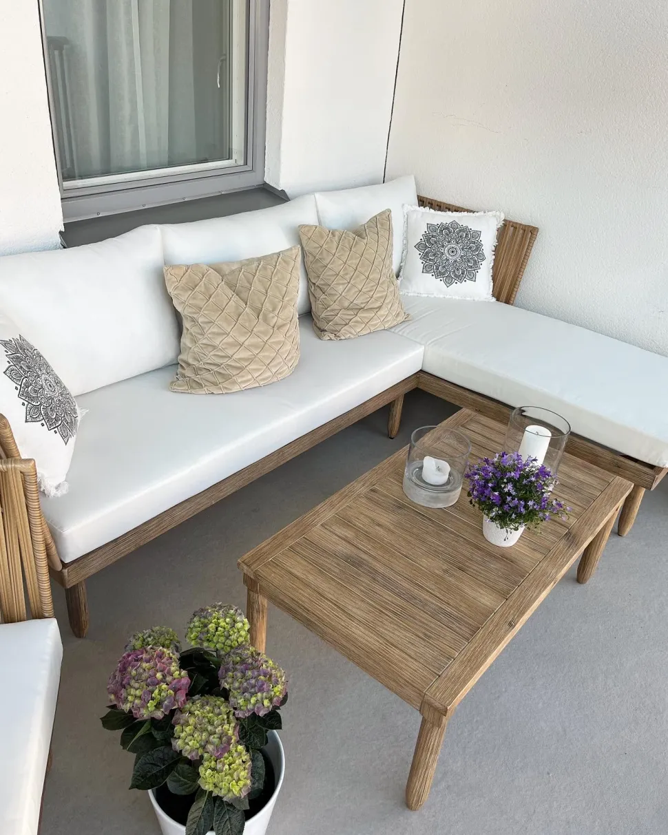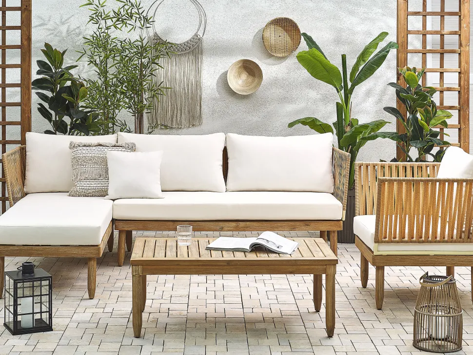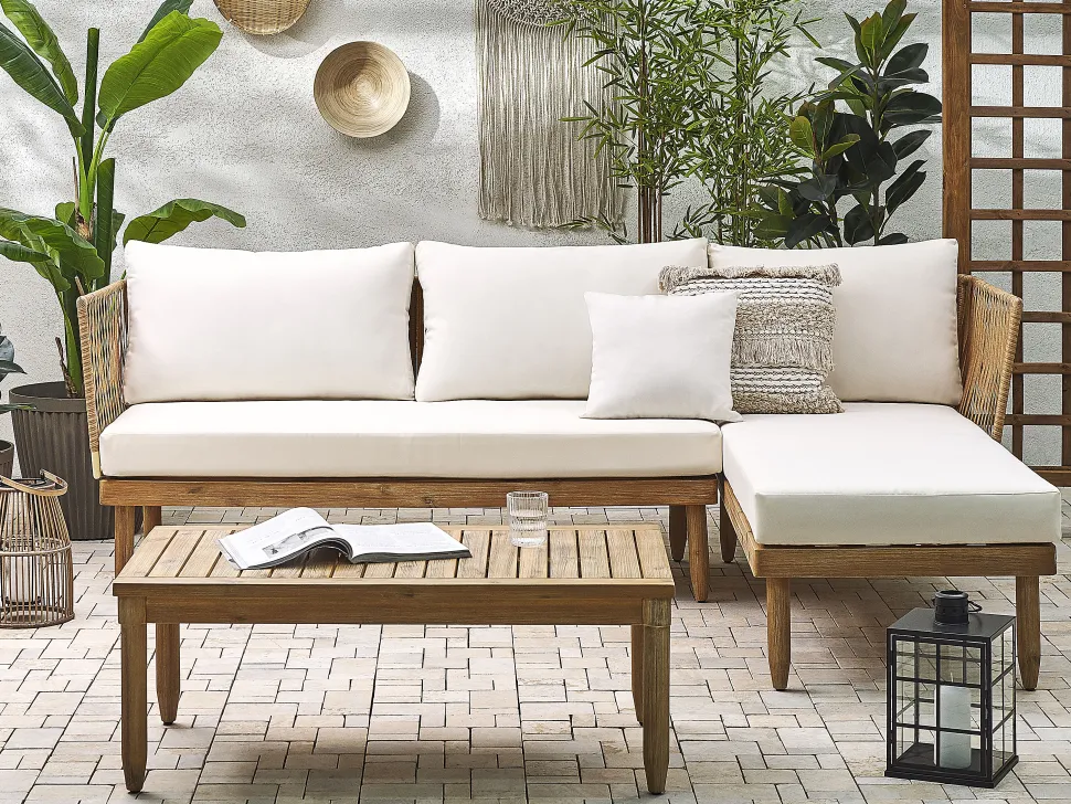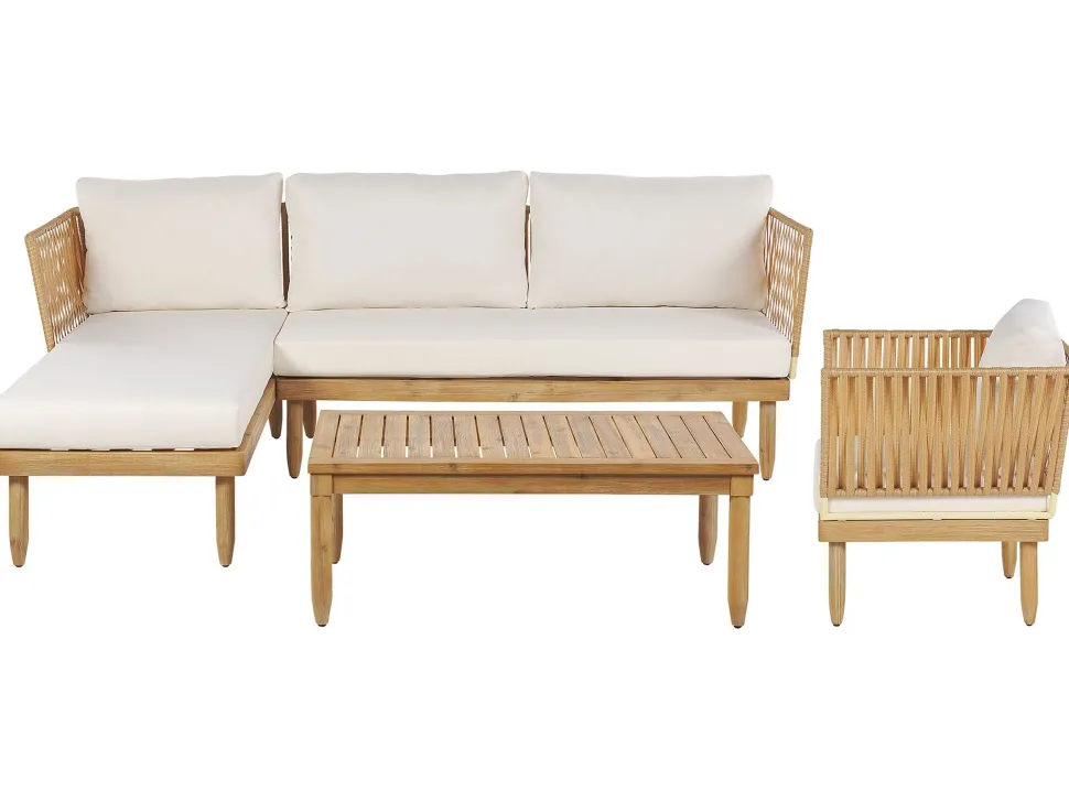 Beliani 4-Istuttava Ulkosohvaryhma Akasiapuu Vasenk. Valkoinen Cremona Online