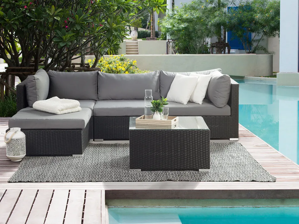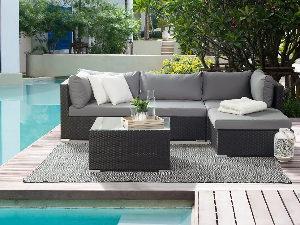 Beliani 4-Istuttava Ulkosohvaryhma Polyrottinki Oikeak. Musta Sano Ii Clearance