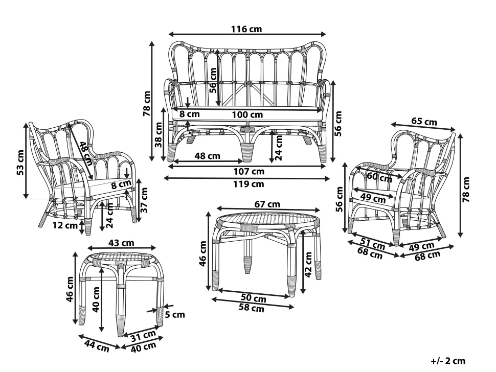 Beliani 4-Istuttava Ulkosohvaryhma Rottinki Luonnonvari Brindisi Best