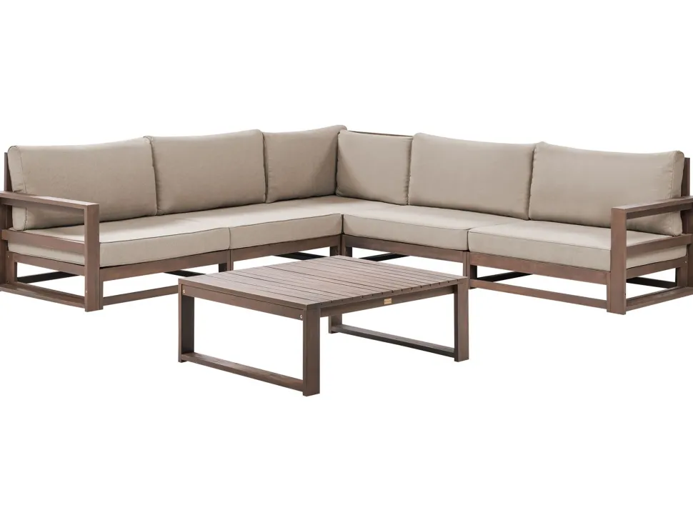 Beliani 5-Istuttava Ulkokulmasohvaryhma Sertifioitu Akaasia Tumma Puu Timor Ii Fashion
