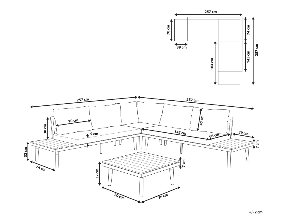 Beliani 5-Istuttava Ulkosohvaryhma Akasiapuu Harmaa Corato Fashion