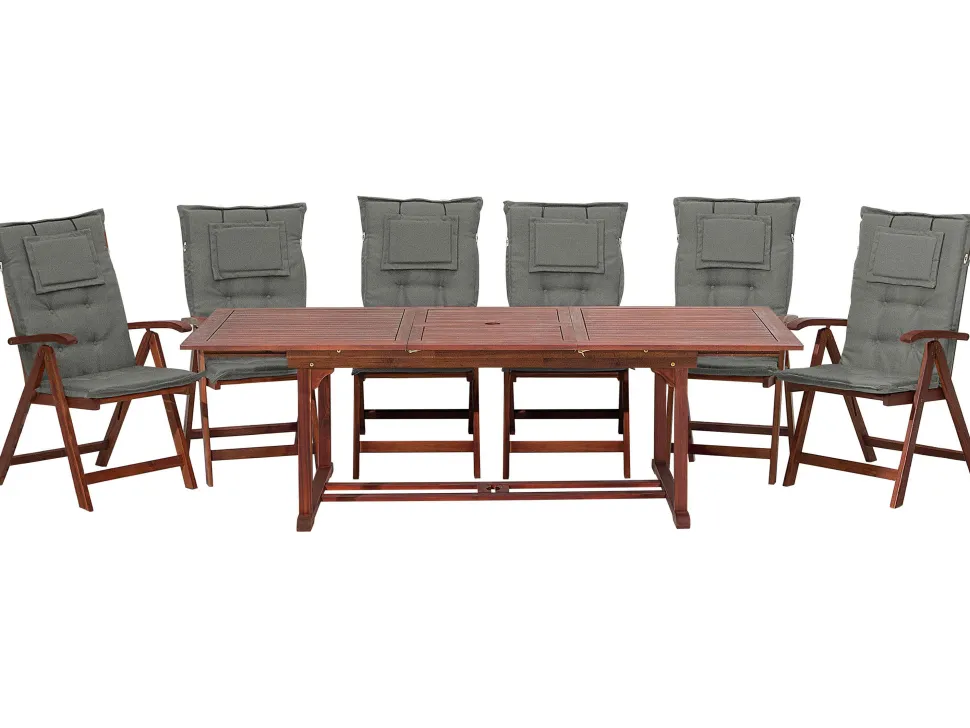 Beliani 6-Istuttava Akaasiapuinen Ulkoruokailuryhma Harmailla Pehmusteilla Toscana Hot