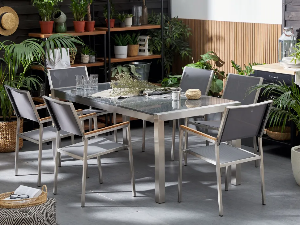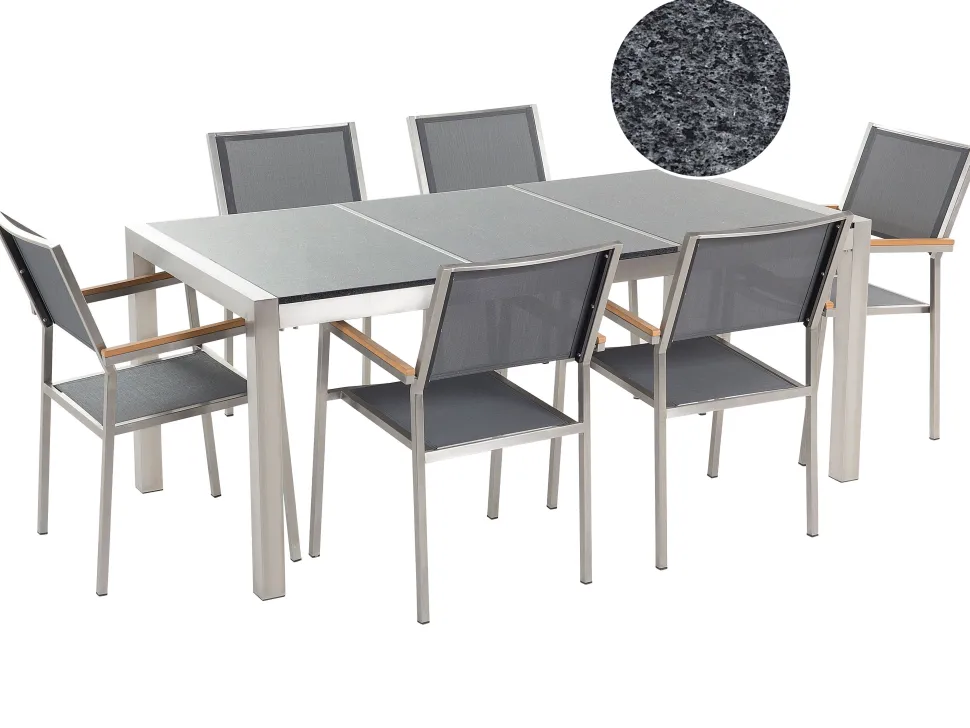 Beliani 6-Istuttava Ulkoruokailuryhma 3-Osainen Graniittitaso Ja Tekstiilituolit Harmaa Grosseto Best Sale