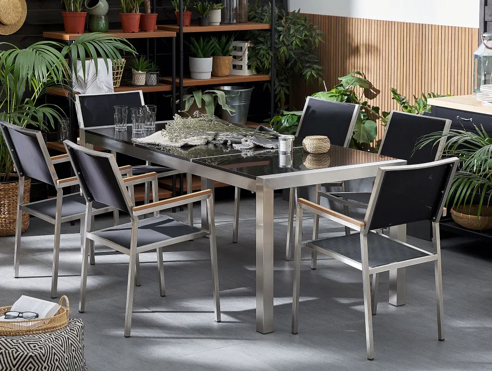 Beliani 6-Istuttava Ulkoruokailuryhma 3-Osainen Graniittitaso Tekstiilituolit Musta Grosseto Online