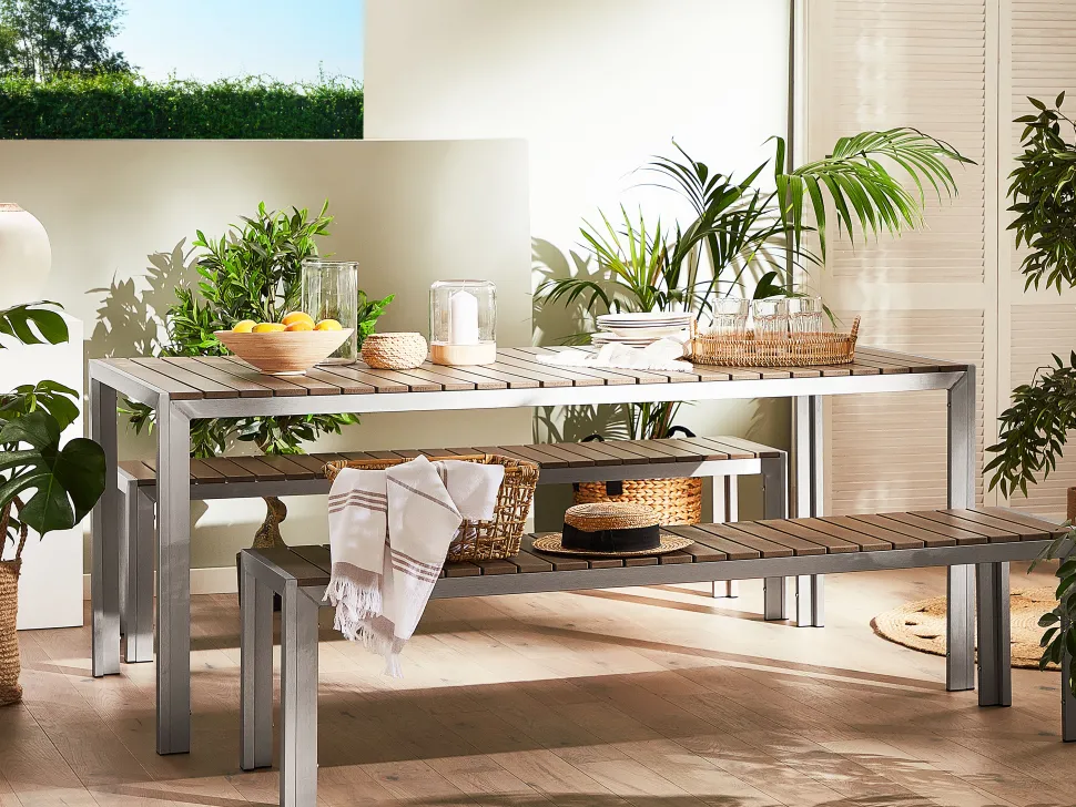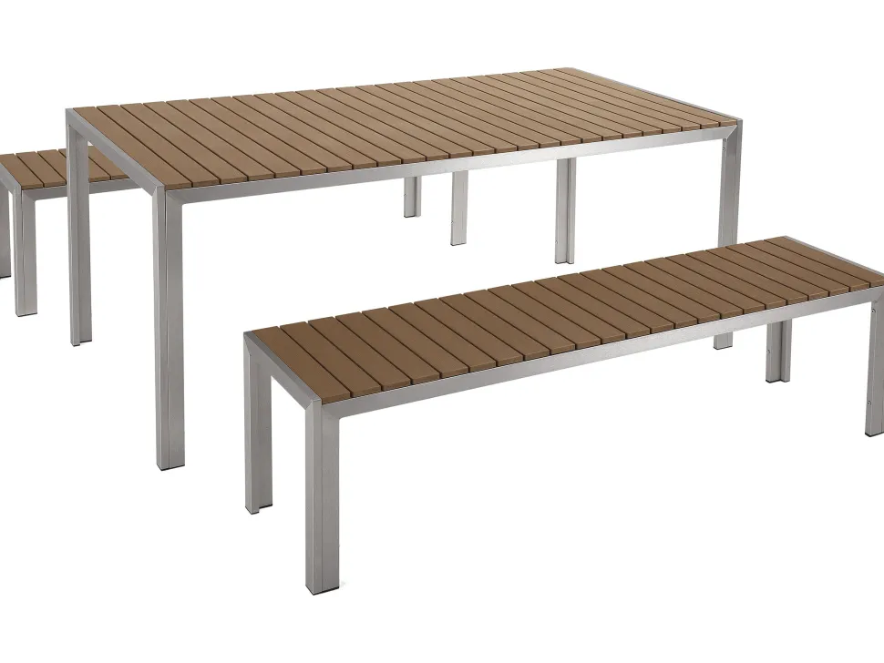 Beliani 6-Istuttava Ulkoruokailuryhma Alumiini Vaalea Puu Nardo Hot