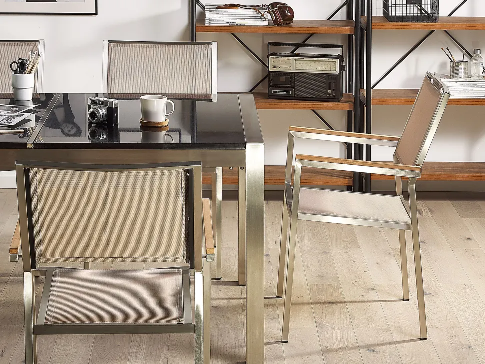 Beliani 6-Istuttava Ulkoruokailuryhma Lasitaso Tekstiilituolit Beige Grosseto Cheap