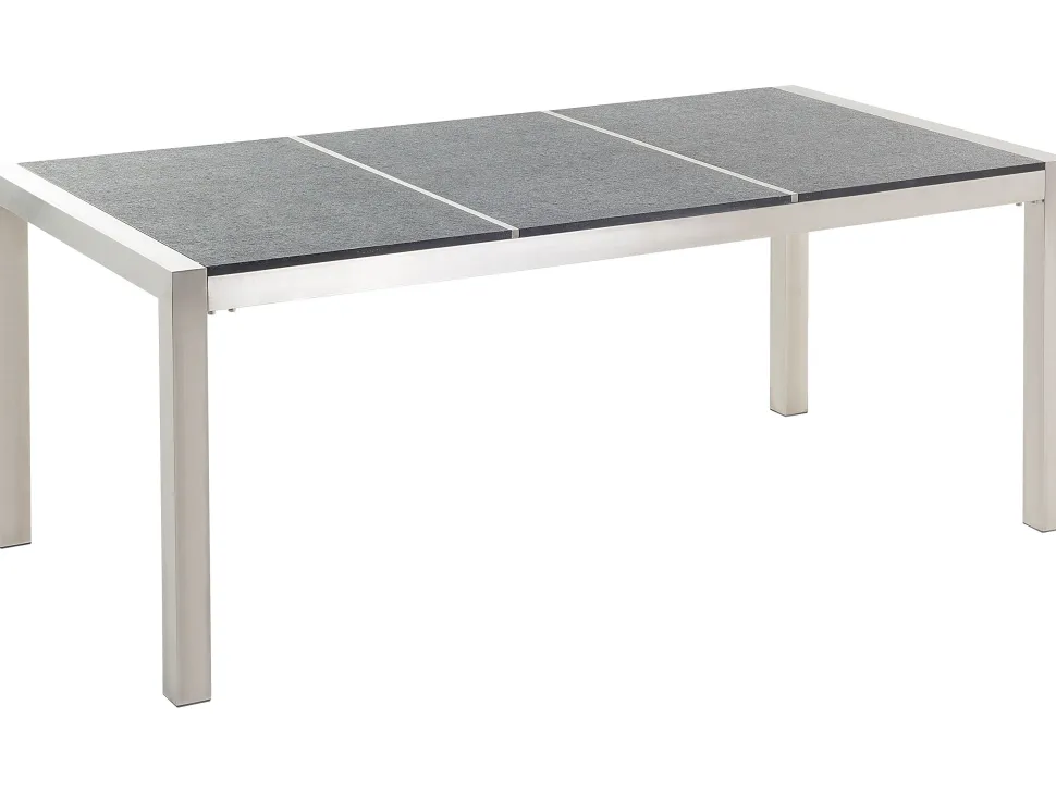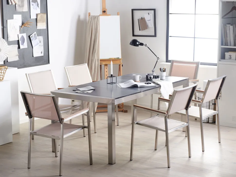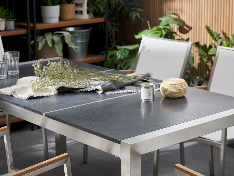 Beliani 6-Istuttava Ulkoruokailuryhma Poltettu Graniittitaso Tekstiilituolit Musta/Beige Grosseto Discount