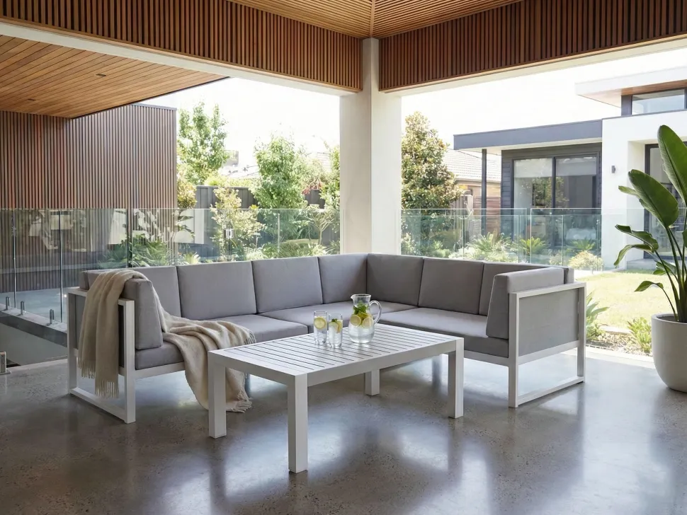Beliani 6-Istuttava Ulkosohvaryhma Alumiini Valkoinen/Harmaa Castella Online