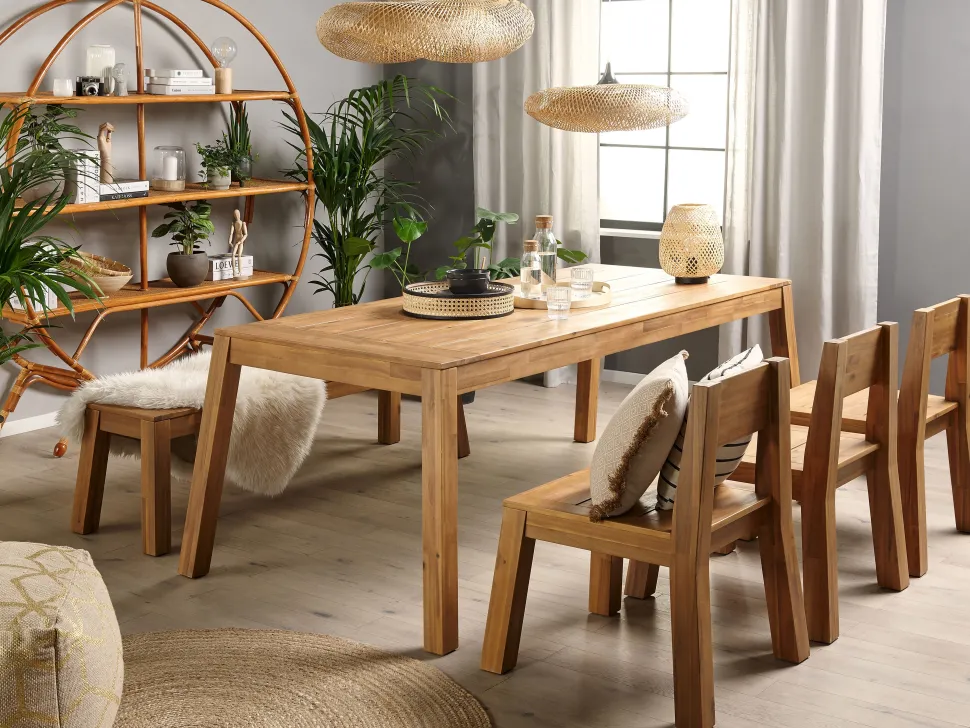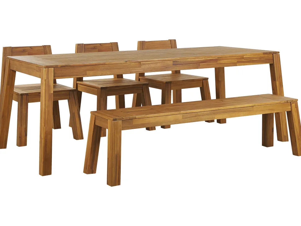 Beliani 6-Istuttava Vaalea Akaasiapuinen Ulkoruokailuryhma Penkilla Ja Tuoleilla Livorno Cheap