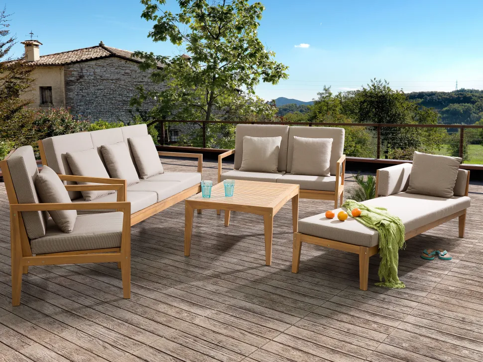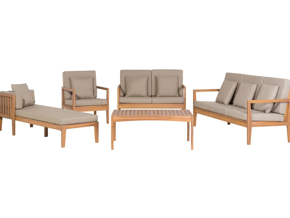 Beliani 7-Istuttava Ulkosohvaryhma Sertifioitu Akaasia Vaalea Puu Pataja Discount