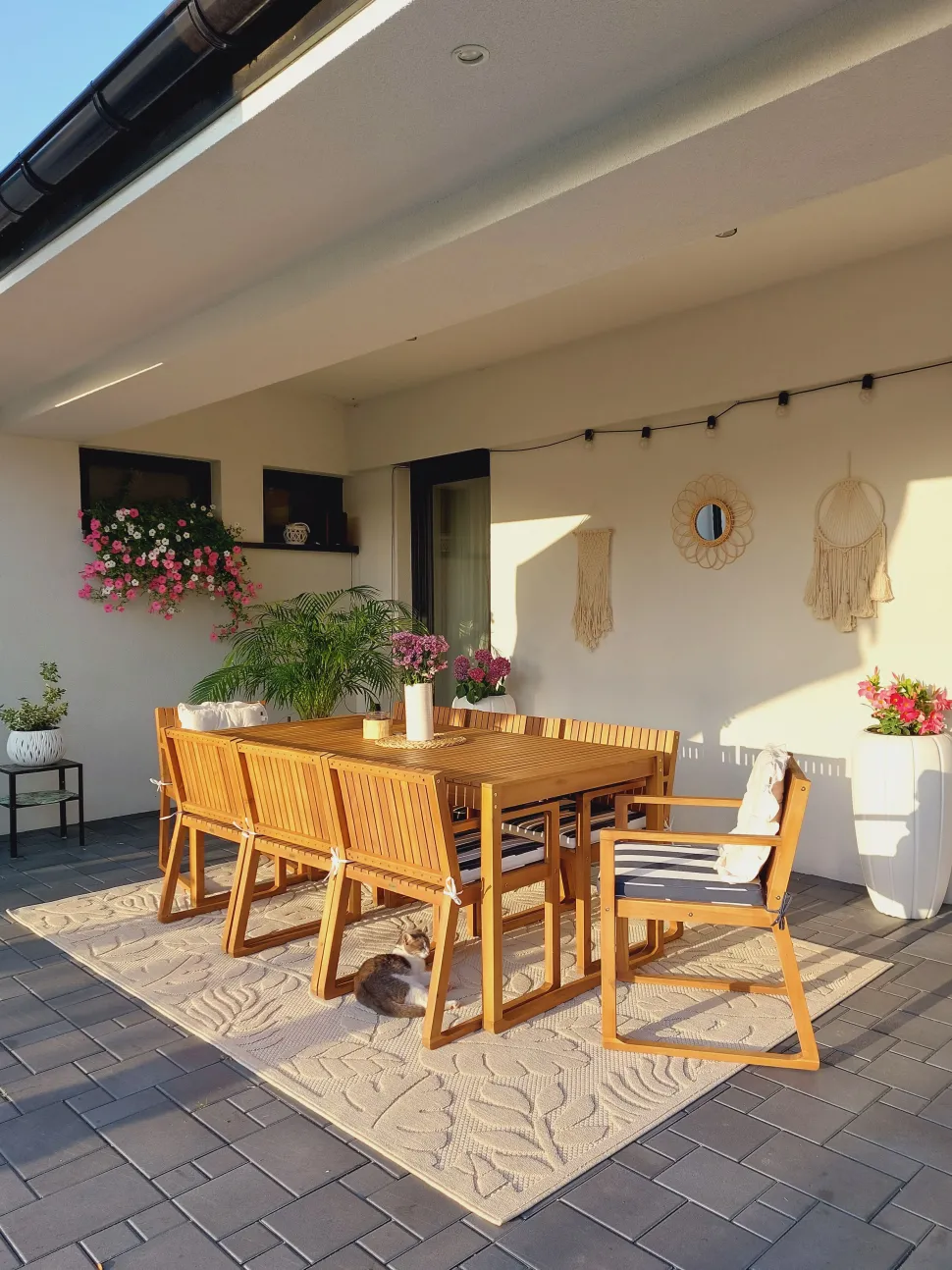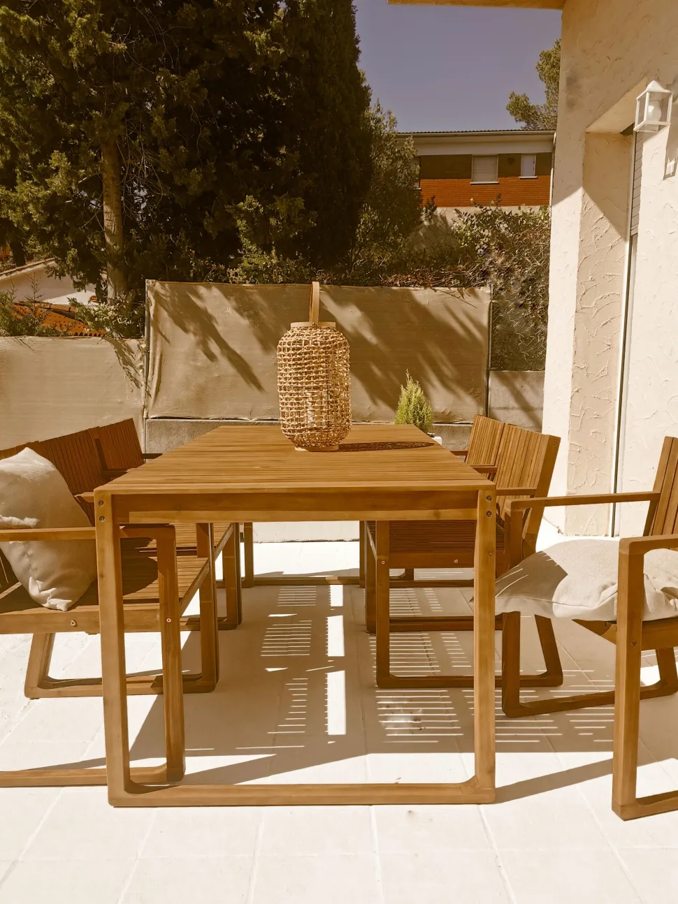 Beliani 8-Istuttava Puutarhapoytasetti Sini-Valkoraidallisilla Pehmusteilla Sassari Outlet