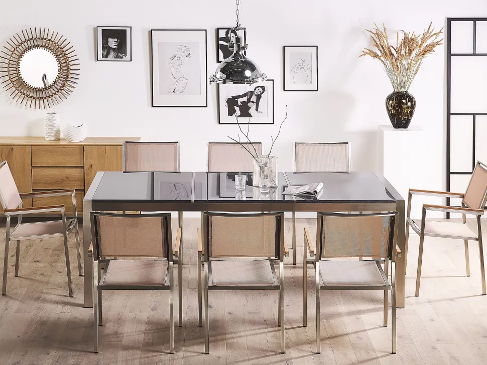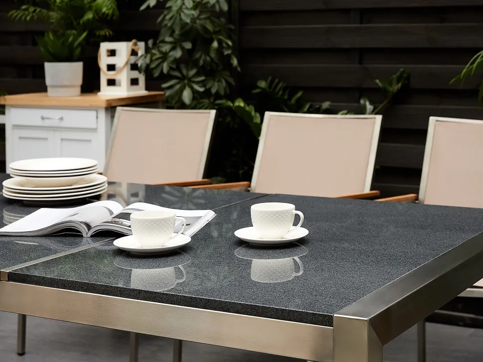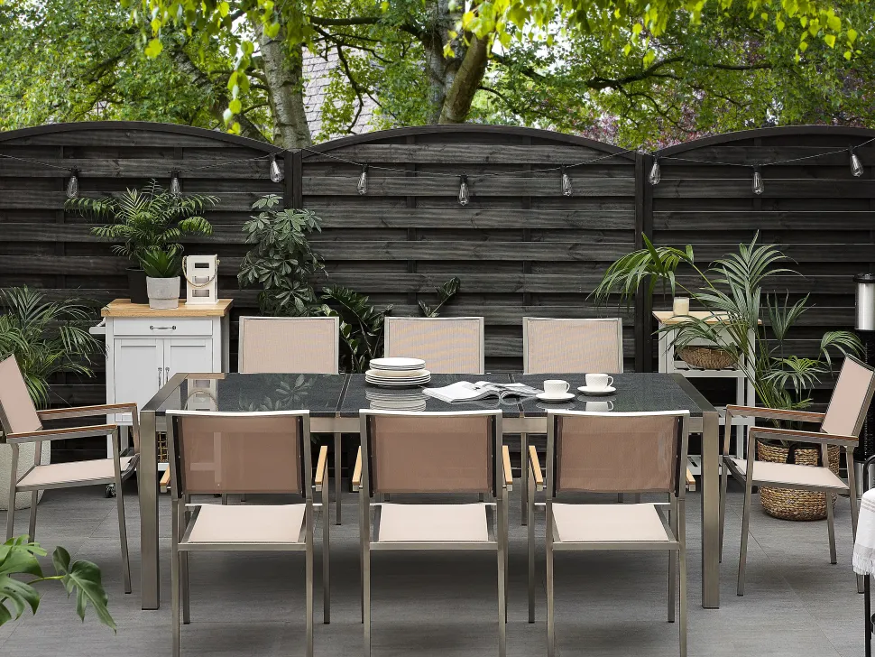 Beliani 8-Istuttava Ulkoruokailuryhma 3-Osainen Graniittitaso Tekstiilituolit Harmaa/Beige Grosseto Flash Sale