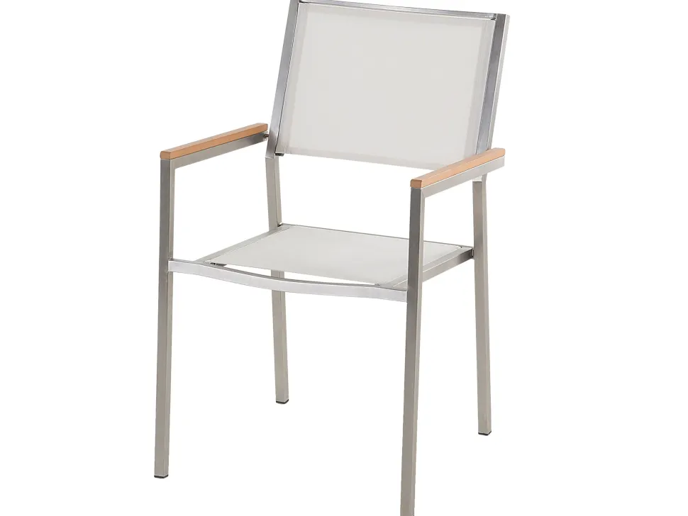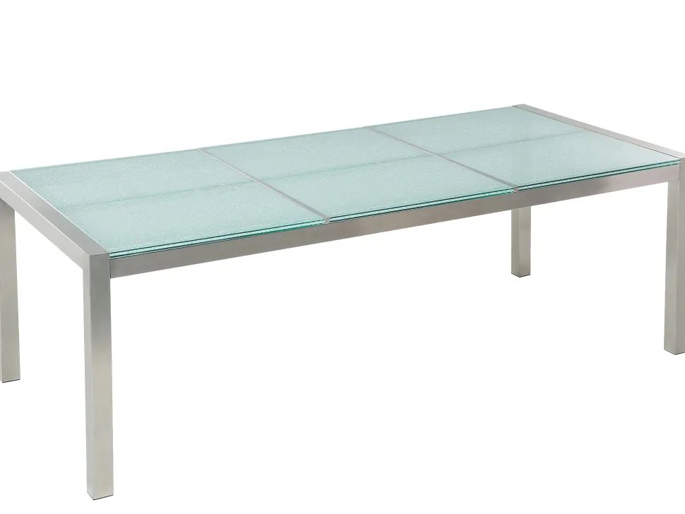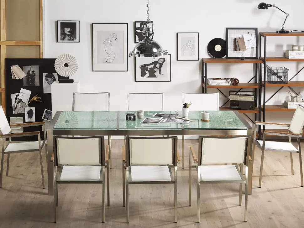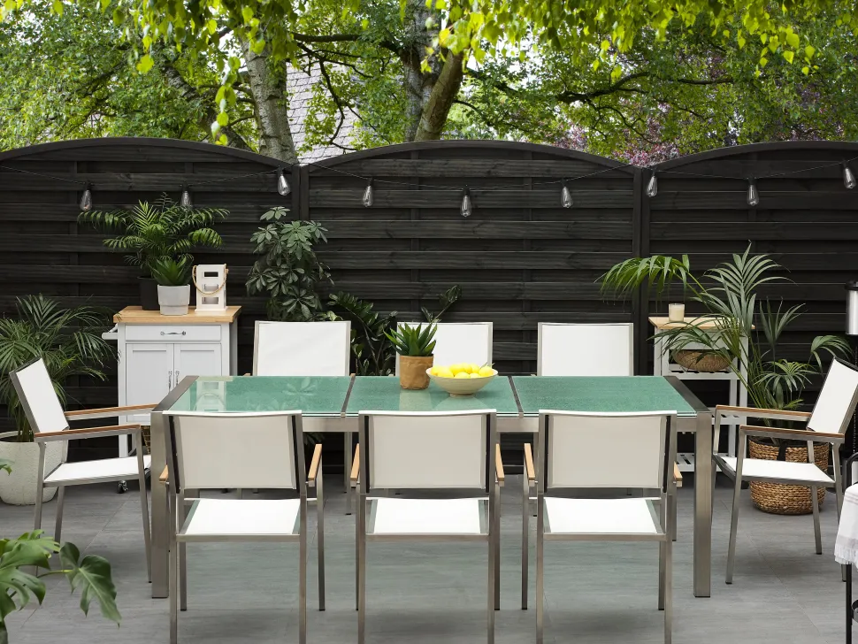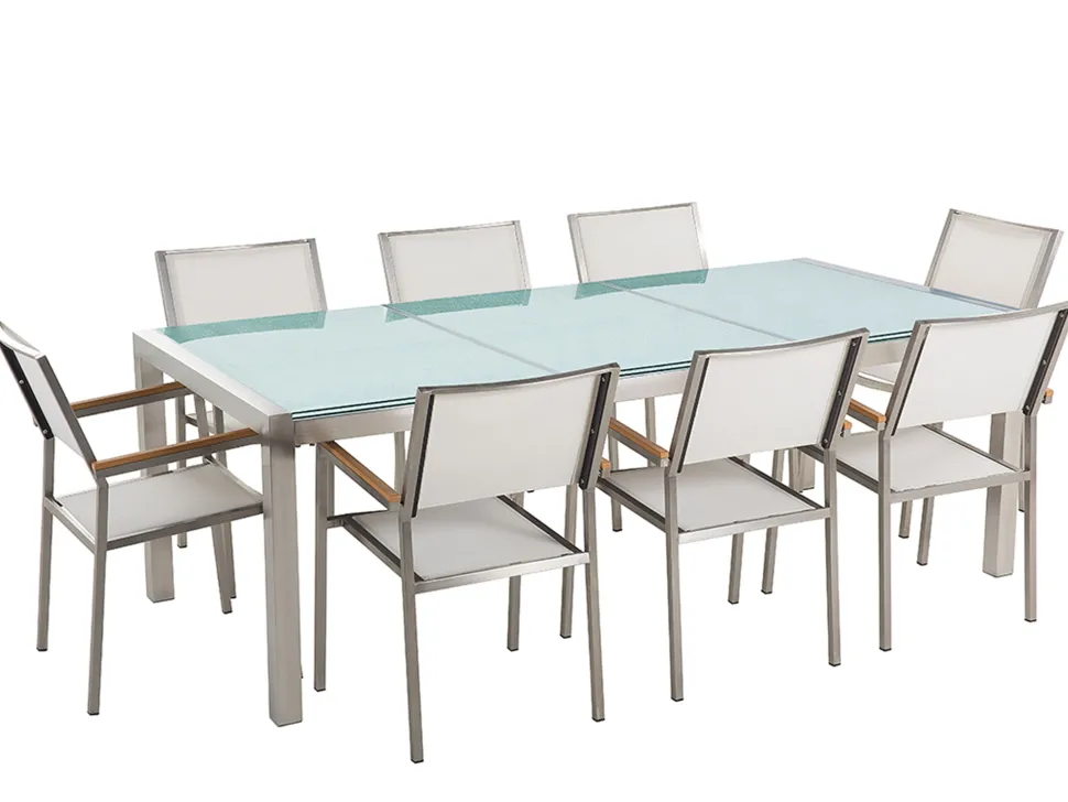 Beliani 8-Istuttava Ulkoruokailuryhma 3-Osainen Lasitaso Tekstiilituolit Valkoinen Grosseto Hot