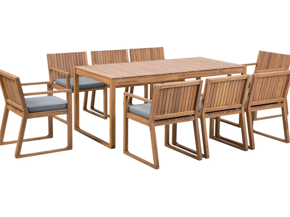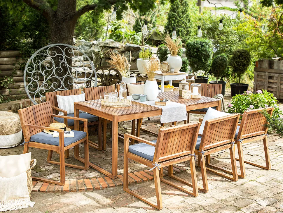 Beliani 8-Istuttava Ulkoruokailuryhma Akaasia Vaalea Puu/Sininen Sassari Online