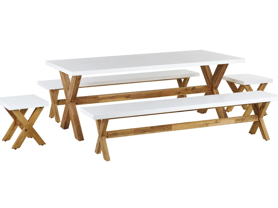 Beliani 8-Istuttava Ulkoruokailuryhma Penkeilla Ja Jakkaroilla Valkoinen Olbia Online