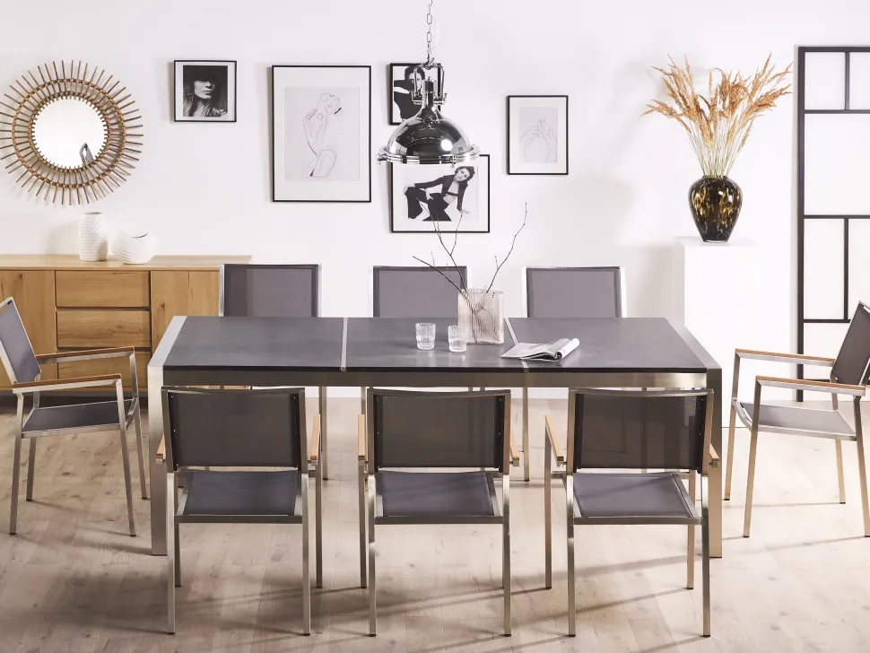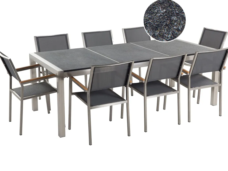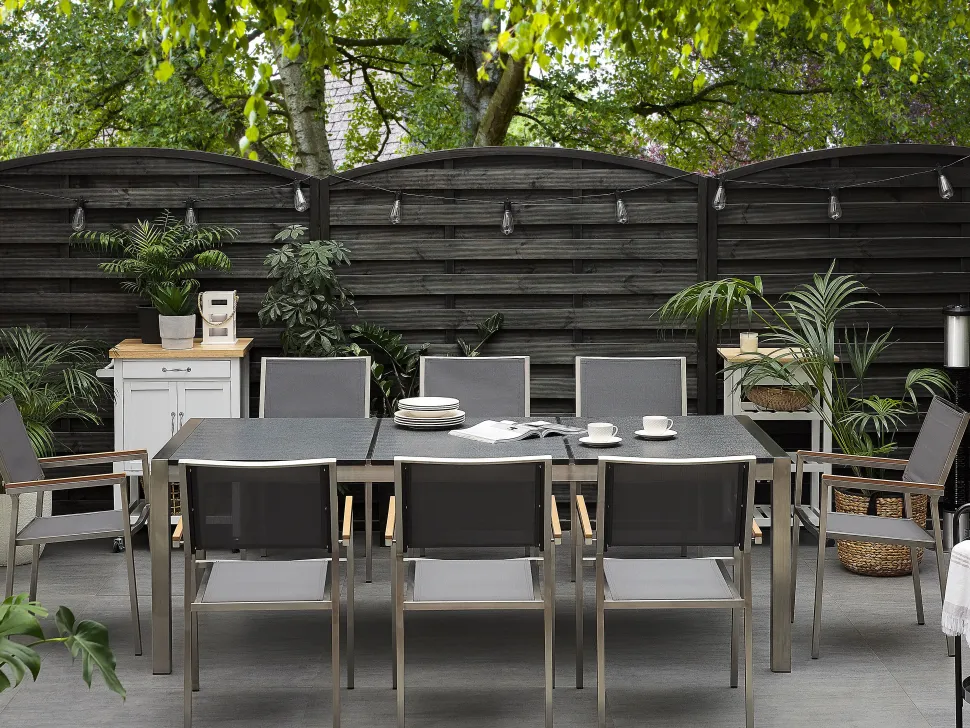 Beliani 8-Istuttava Ulkoruokailuryhma Poltettu Graniittitaso Tekstiilituolit Musta/Harmaa Grosseto Online