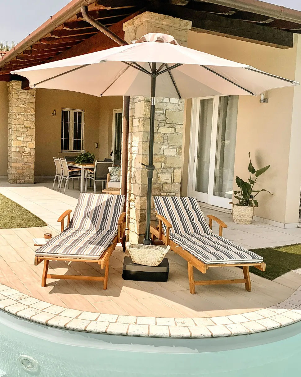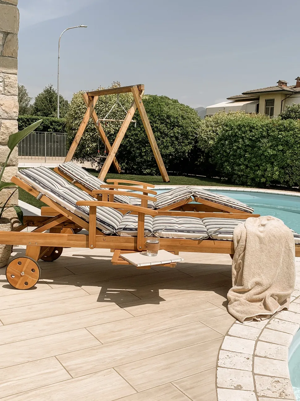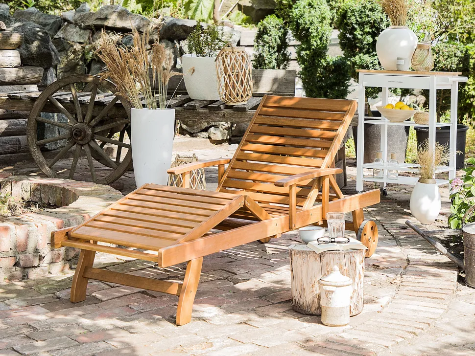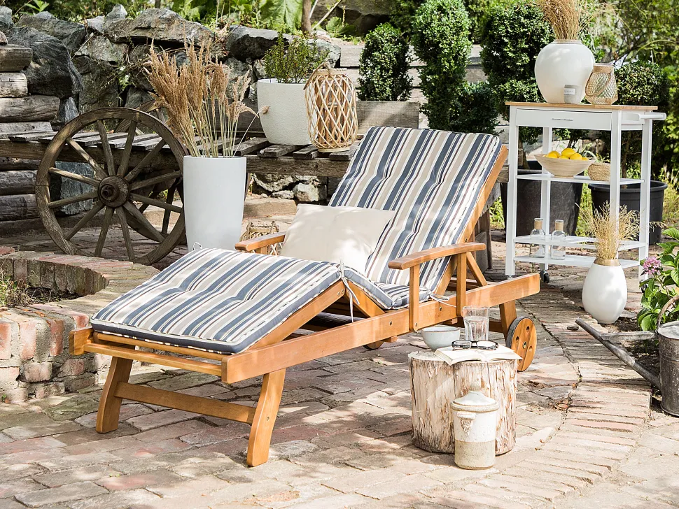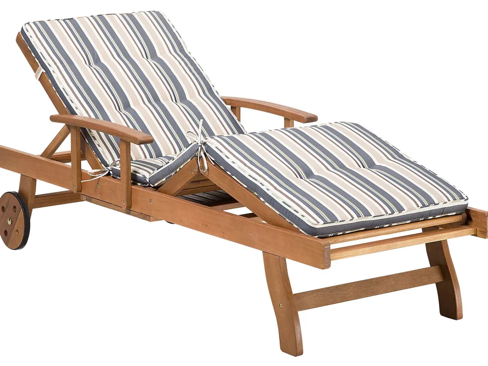 Beliani Akaasiapuinen Aurinkotuoli Raidallisella Pehmusteella Java Outlet