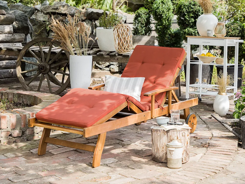 Beliani Akaasiapuinen Aurinkotuoli Tummanpunaisella Pehmusteella Java Fashion