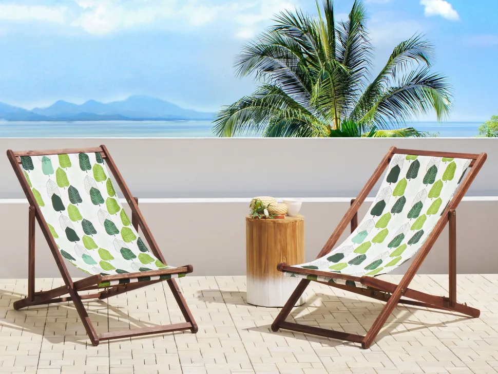 Beliani Aurinkotuoli Tumma Akaasia Vaihtokankaat Luonnonvalkoinen/Vihrea Lehdet 2 Kpl Anzio Online