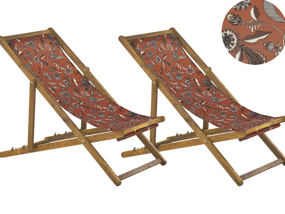 Beliani Aurinkotuoli Vaalea Akaasia Vaihtokankaat Luonnonvalkoinen/Punainen Kukat 2 Kpl Anzio Shop