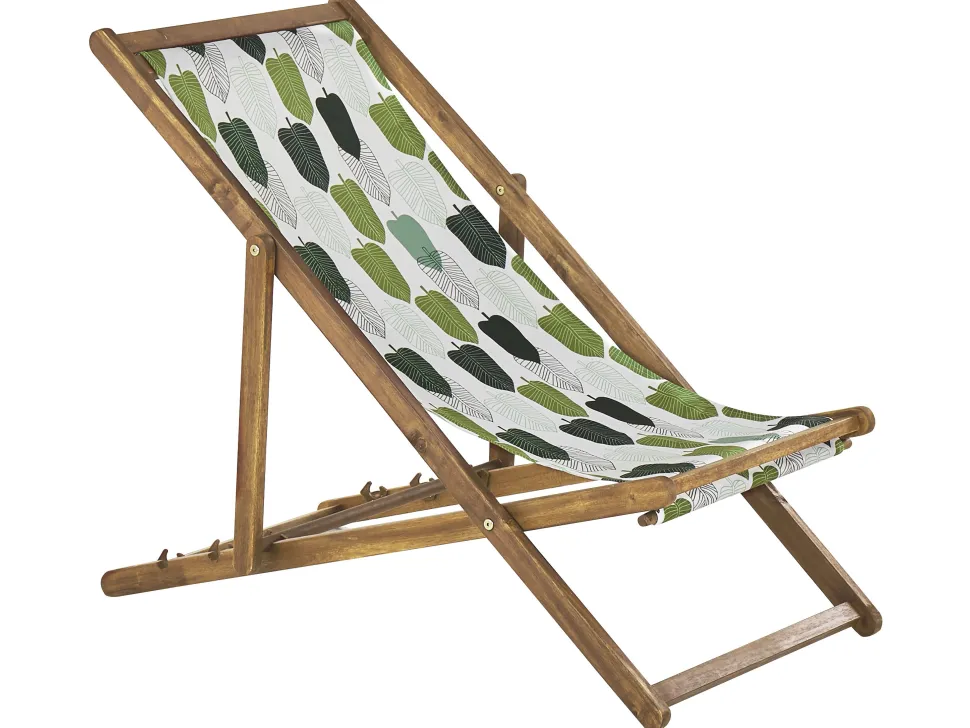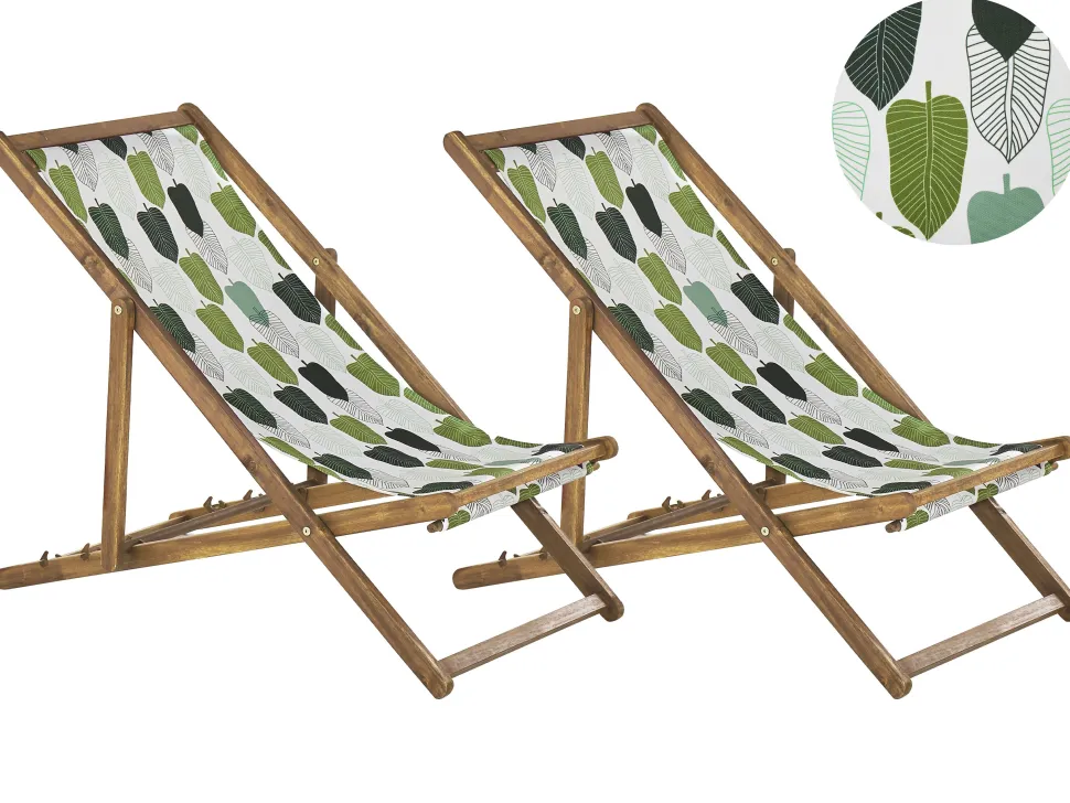 Beliani Aurinkotuoli Vaalea Akaasia Vaihtokankaat Luonnonvalkoinen/Vihrea Lehdet 2 Kpl Anzio Hot