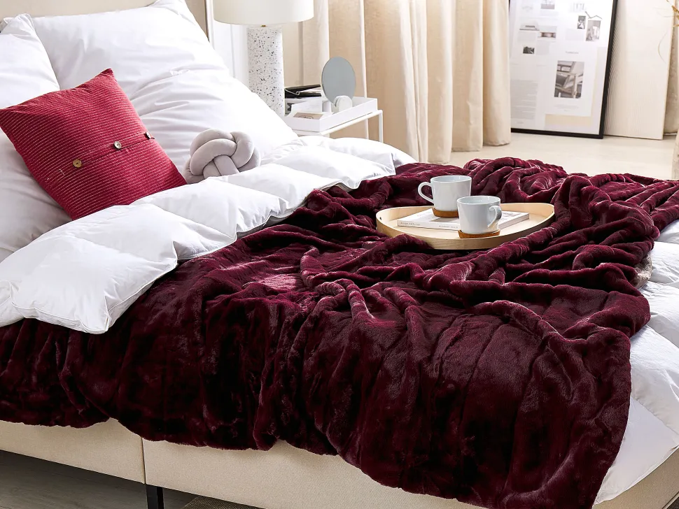 Beliani Kaksipuolinen Viininpunainen Huopa 180 X 220 Cm Tantan Fashion