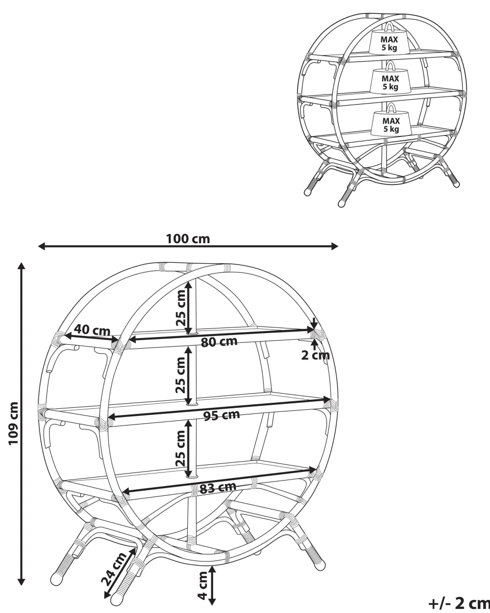 Beliani Kirjahylly Rottinki 3 Hyllya Luonnonvari Tuvalu Ii Shop