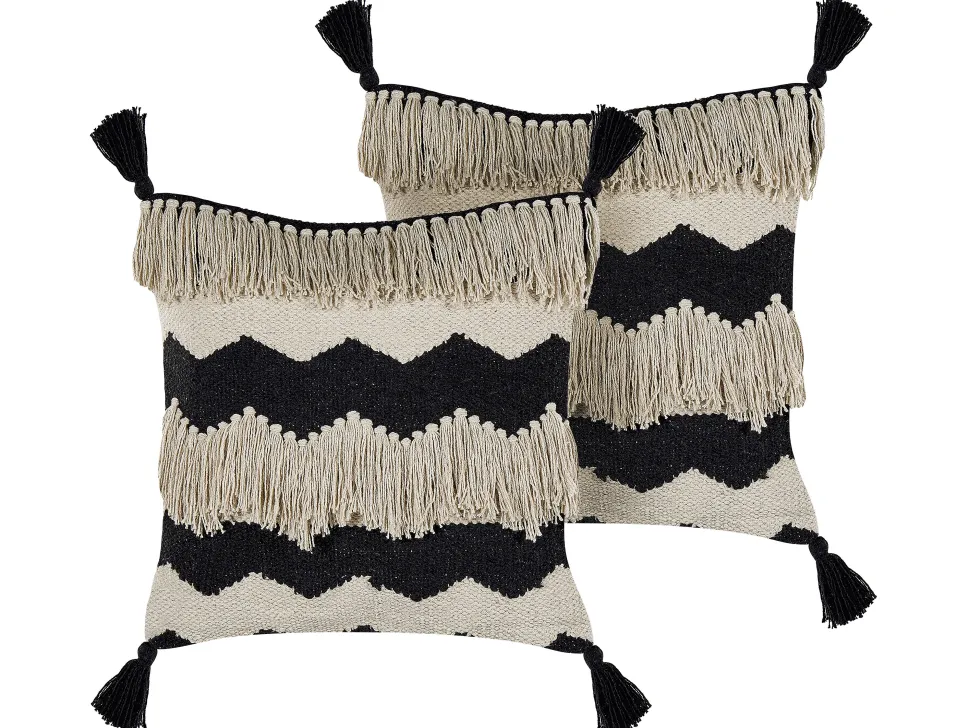 Beliani Koristetyyny Puuvilla Beige/Musta 45 X 45 Cm 2 Kpl Hydrangea Hot
