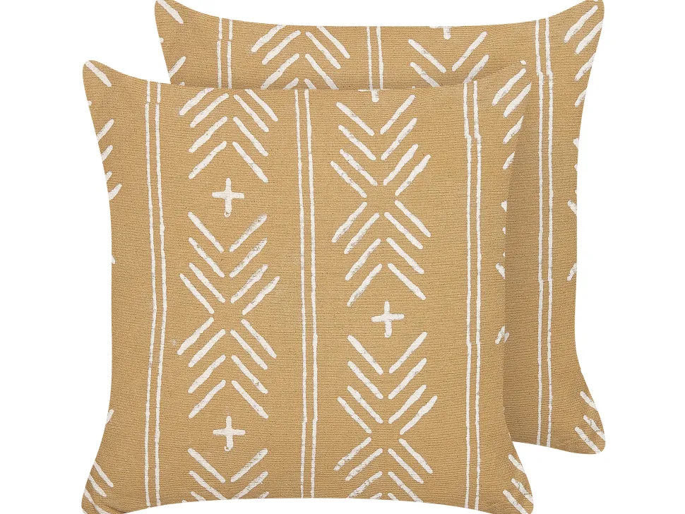 Beliani Koristetyyny Puuvilla Hiekanruskea/Valkoinen 45 X 45 Cm 2 Kpl Banyan Best
