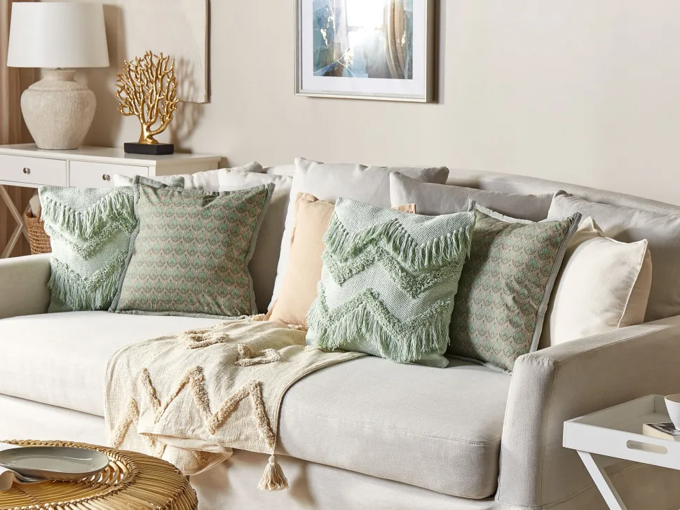 Beliani Koristetyyny Puuvilla Oliivinvihrea 45 X 45 Cm 2 Kpl Pictus Fashion