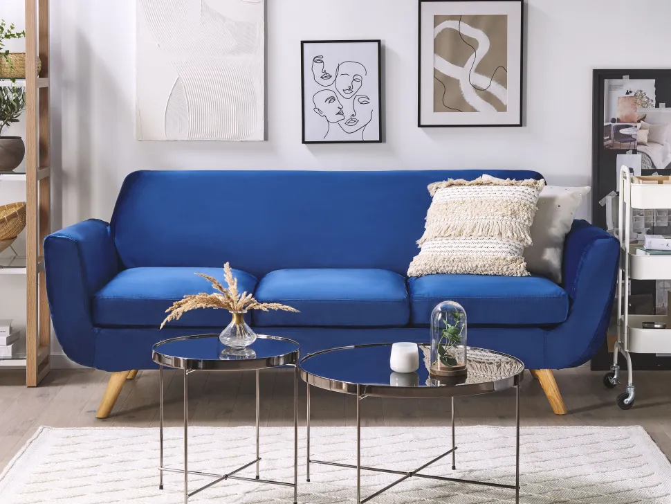 Beliani Paallinen 3-Istuttavaan Sohvaan Sininen Bernes Best