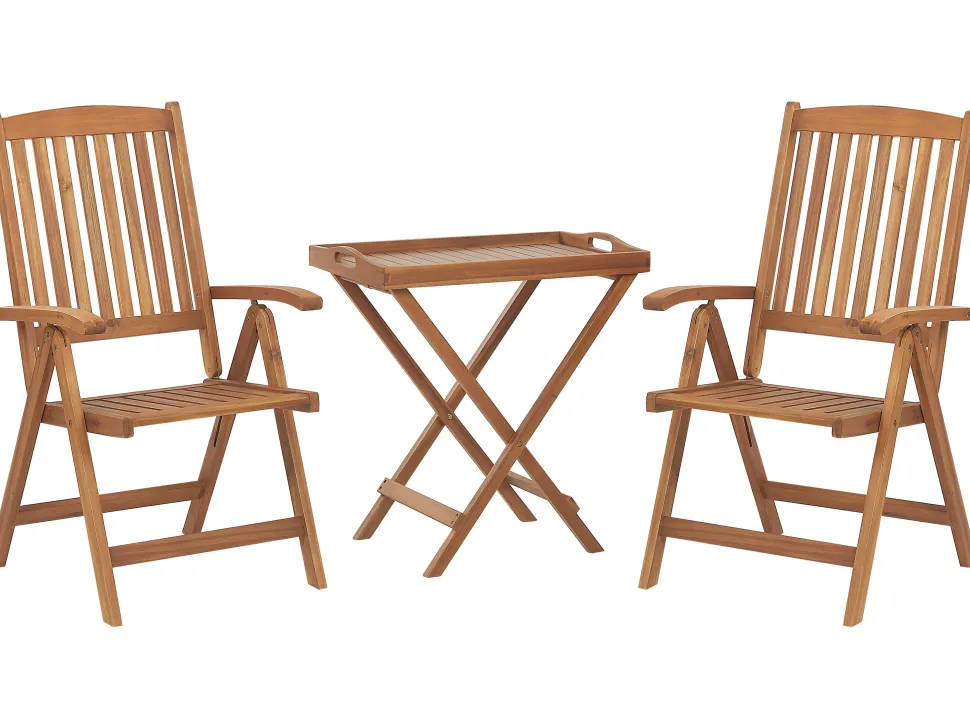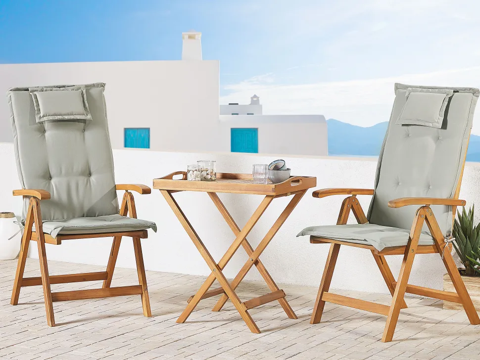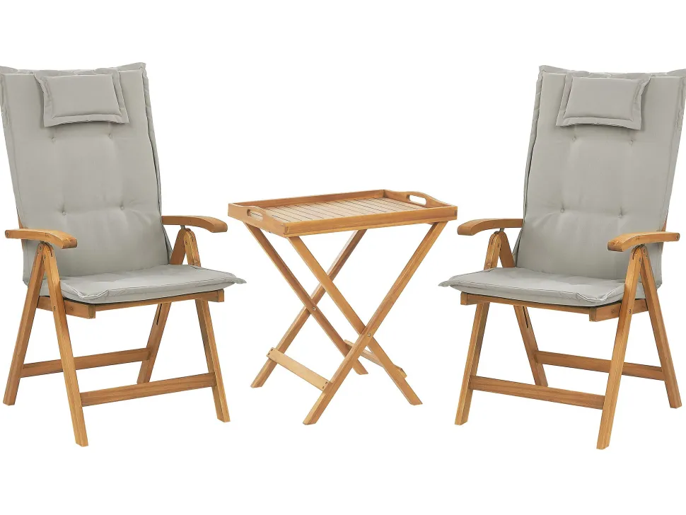 Beliani Parvekekalustesetti Akaasiapuinen Ruskeanharmailla Pehmusteilla Java Cheap