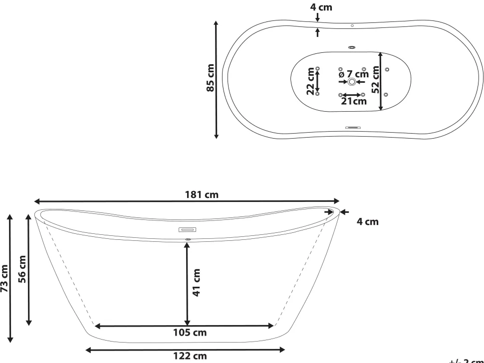 Beliani Poreamme Vapaasti Seisova Led-Valot Valkoinen 180 X 85 Cm Antigua Cheap