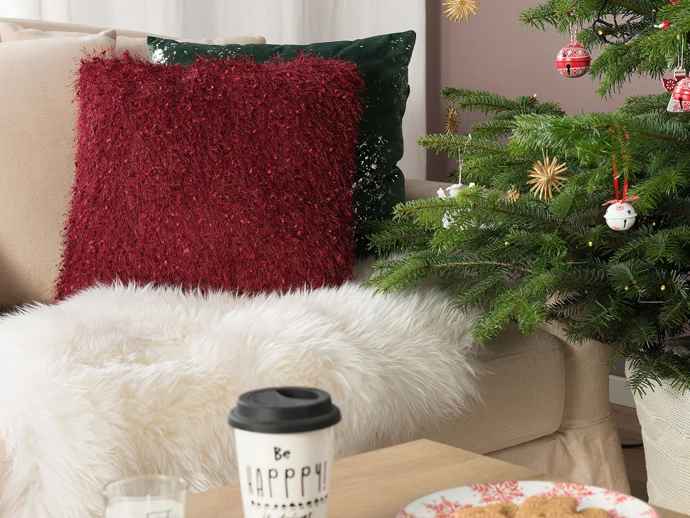 Beliani Punainen 2 Kpl Koristetyynysetti Hapsuilla 45 X 45 Cm Hellebore Shop