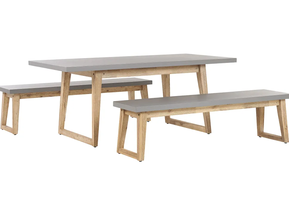 Beliani Puutarhakalustesetti Poydalla Ja 2 Penkilla Harmaa/Vaalea Puu Oria Store