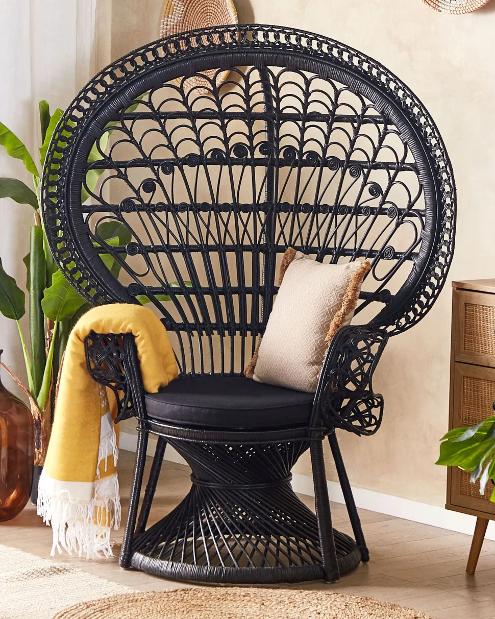 Beliani Riikinkukkotuoli Rottinki Musta Emmanuelle Clearance