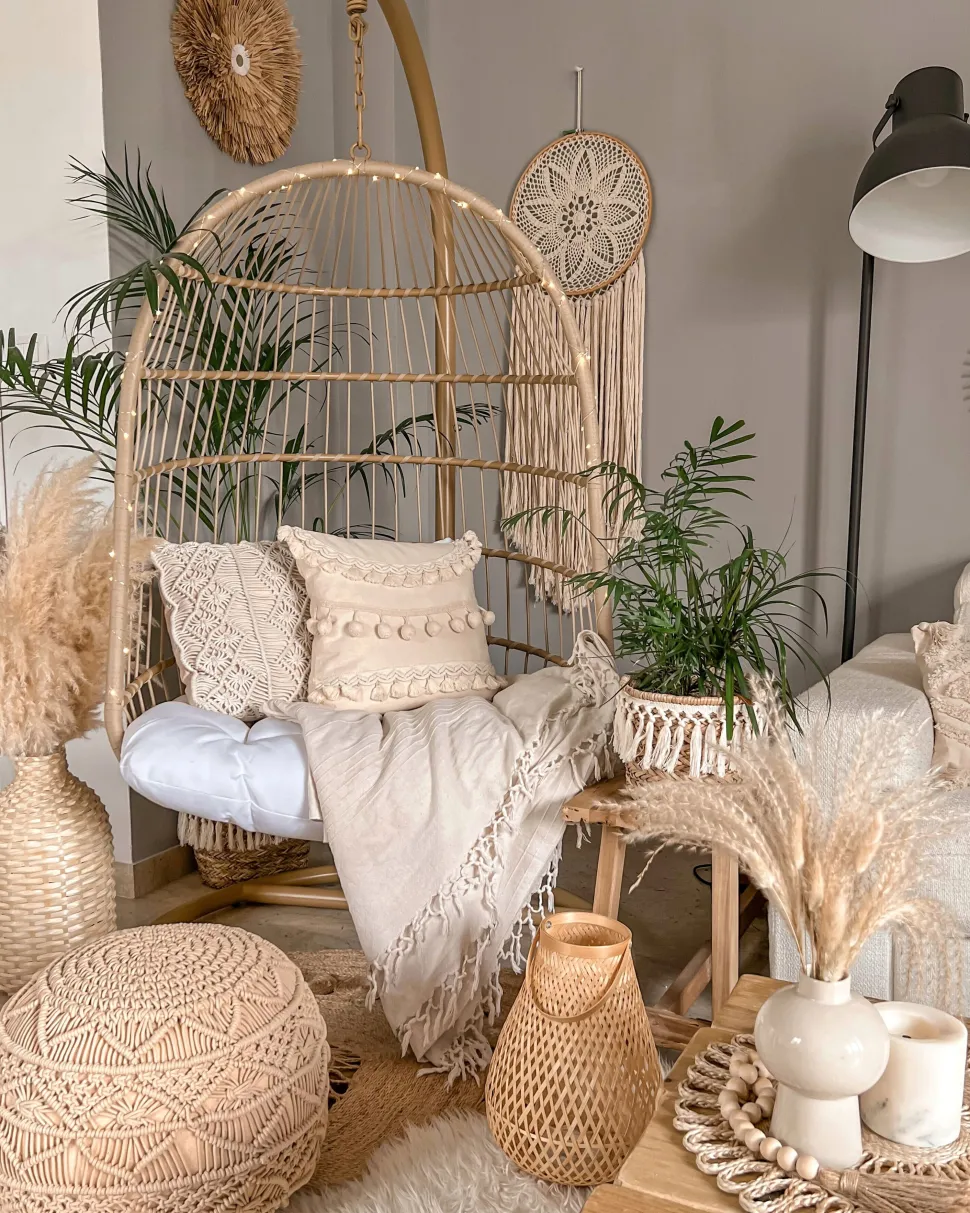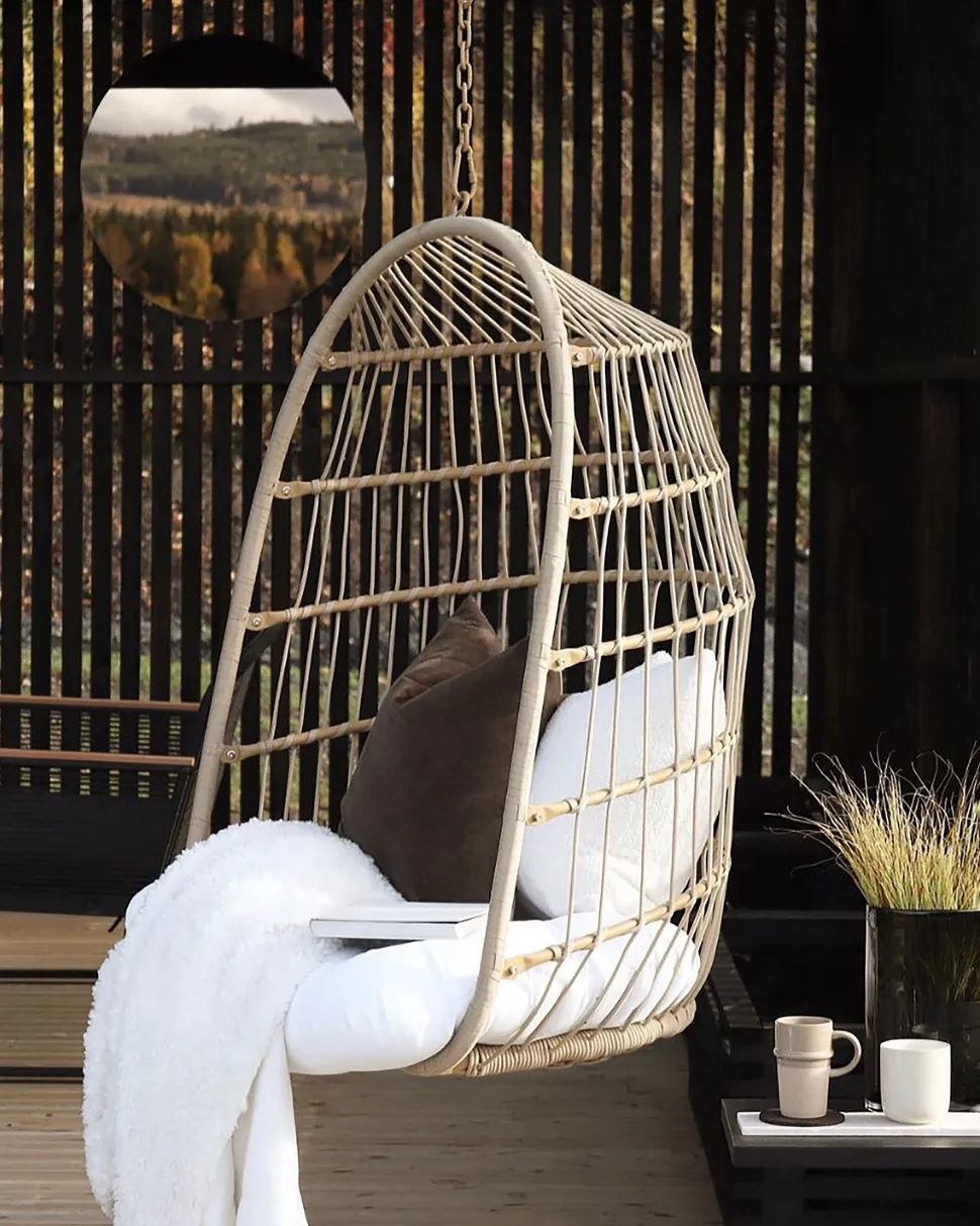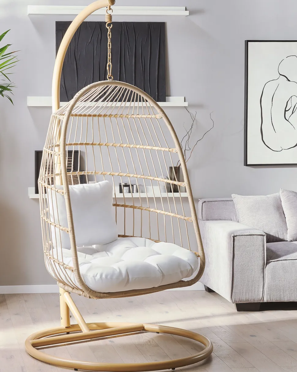 Beliani Riipputuoli Jalustalla Polyrottinki Beige Allera Store