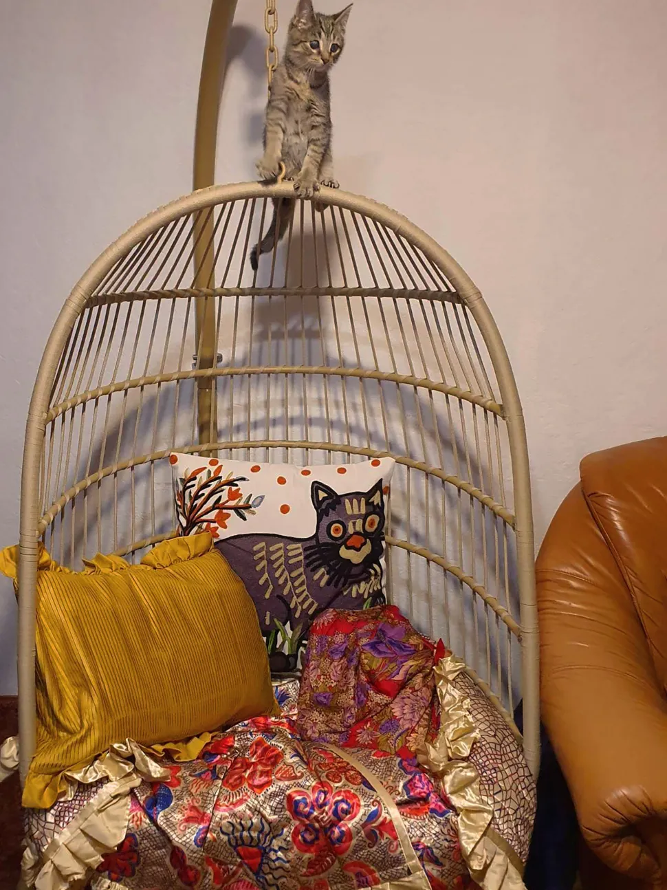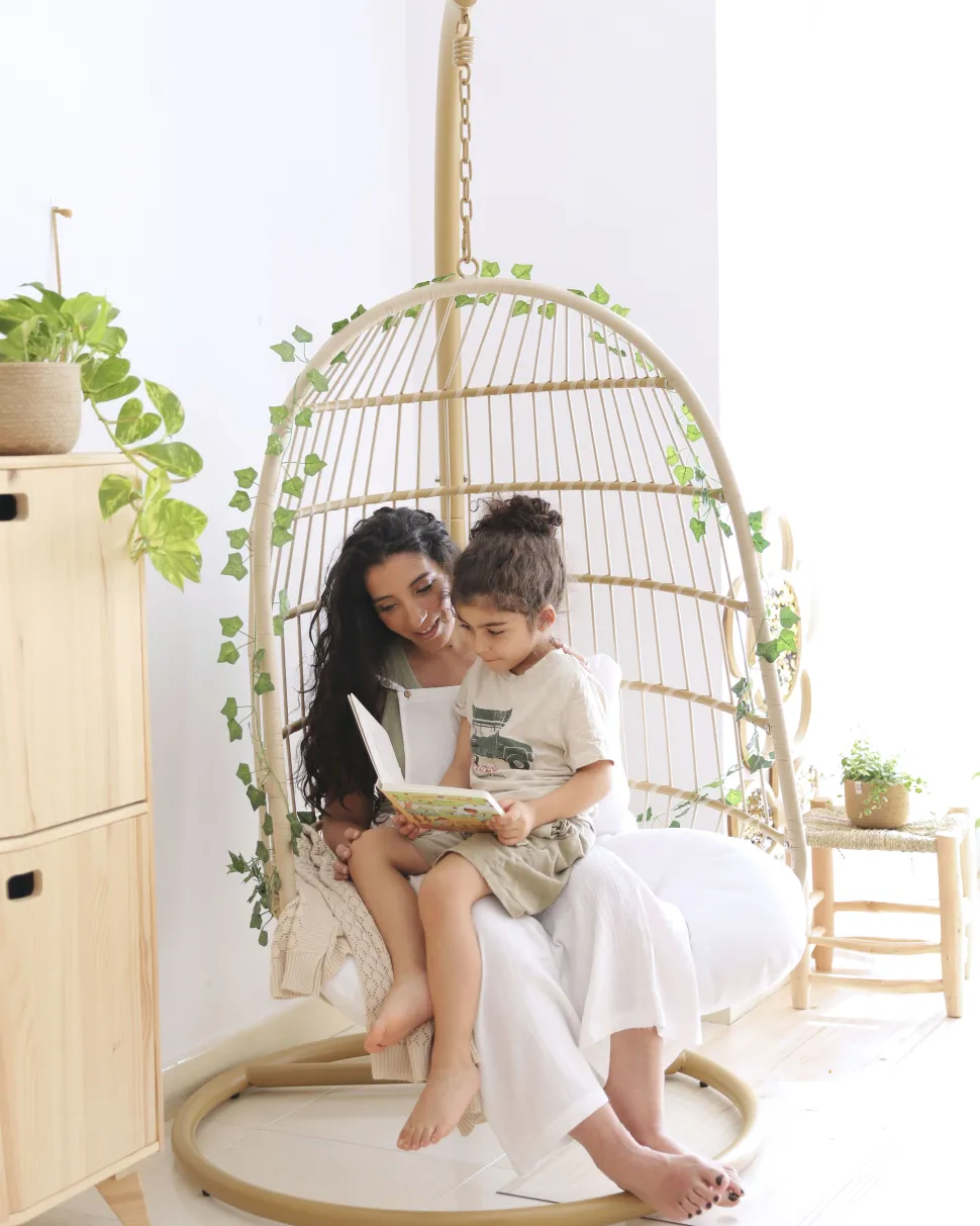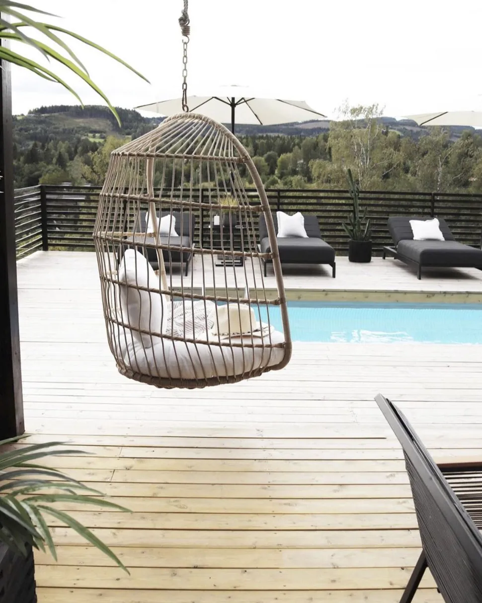 Beliani Riipputuoli Jalustalla Polyrottinki Beige Allera Store