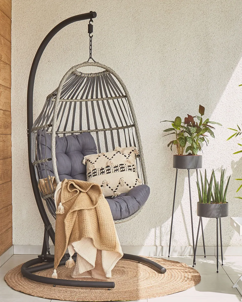 Beliani Riipputuoli Jalustalla Polyrottinki Tummanharmaa Sesia Cheap