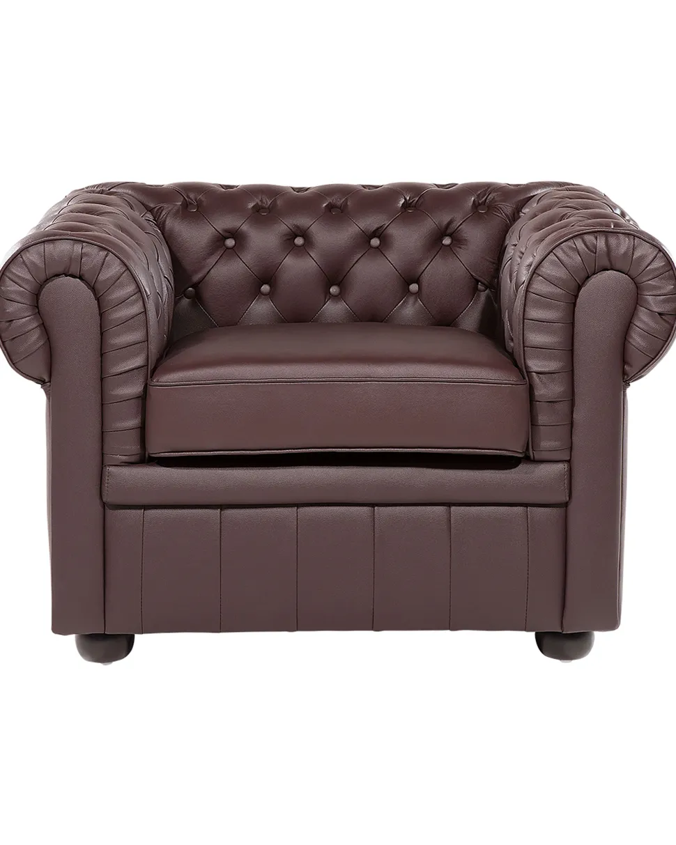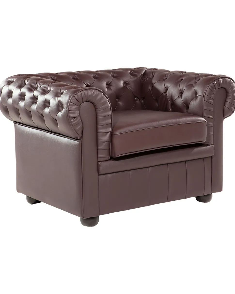 Beliani Ruskea Nahkaverhoiltu Nojatuoli Chesterfield Store