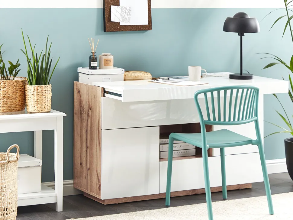 Beliani Senkki/Tyopoyta 2 Laatikkoa 2 Ovea Valkoinen Goran Clearance