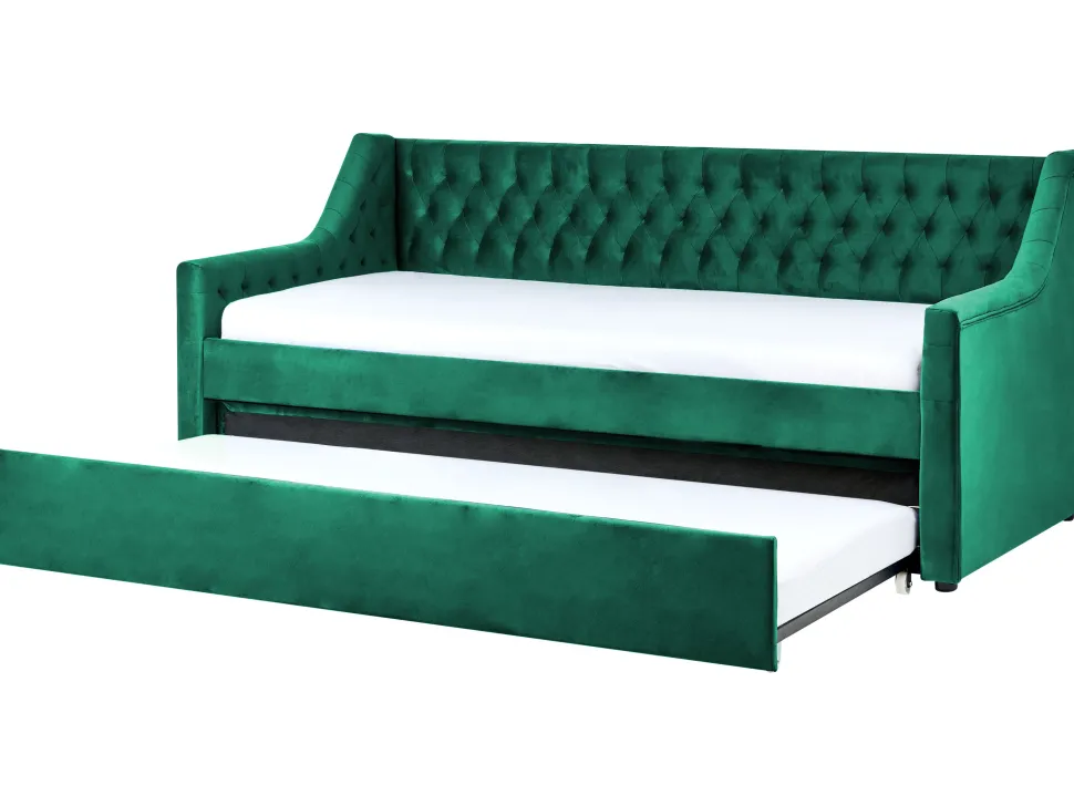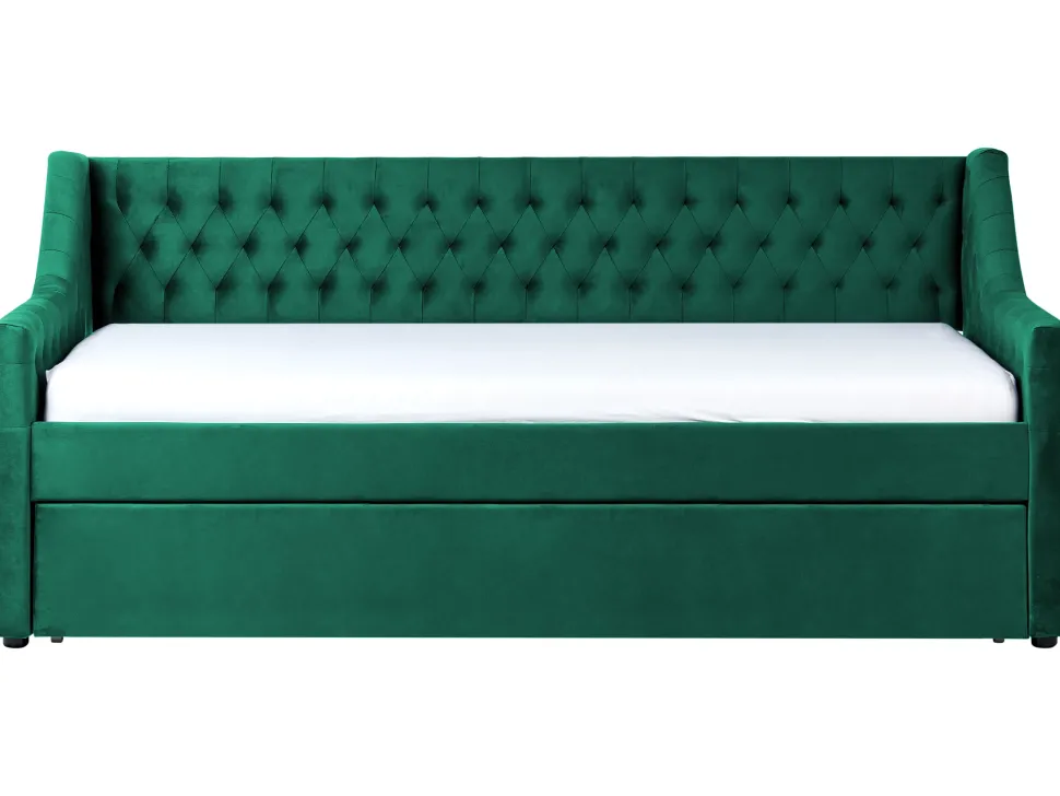 Beliani Sohvasanky Sametti Lisavuode Smaragdinvihrea 90 X 200 Cm Montargis Best Sale